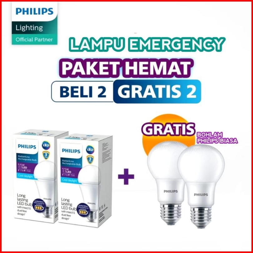 Paket Hemat Beli 2 Gratis 2 Lampu Philips Emergency Beli 2 Lampu Philips Emergency Gratis 2 Lampu Philips Biasa