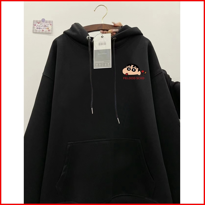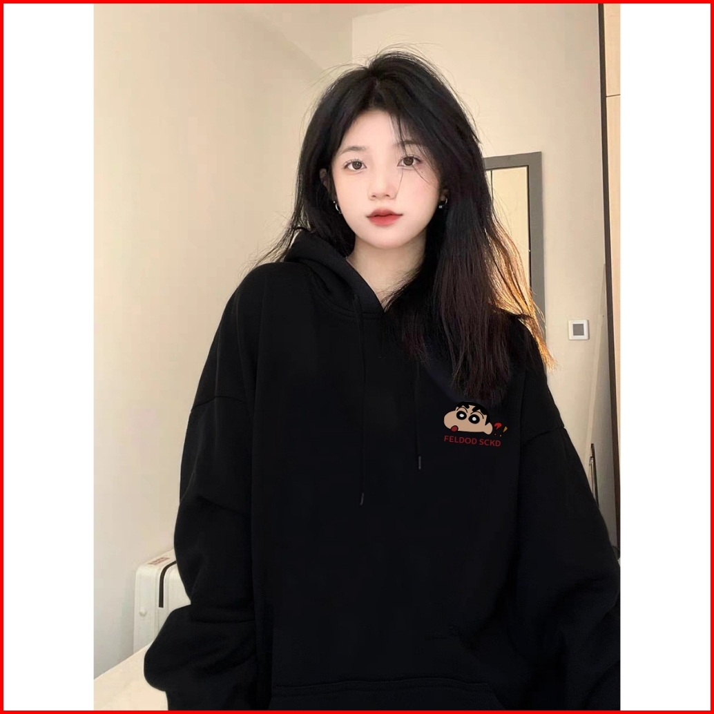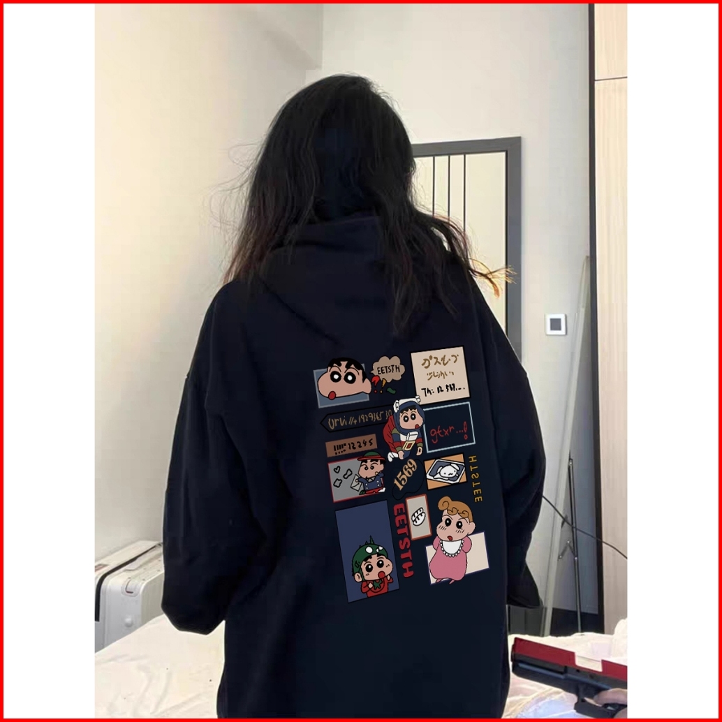 Fastfash Sweater Hoodie Hitam Jumper Wanita Cute Crayon Shin-chan Katun Oversize Premium Pria Wanita Size M-xxl