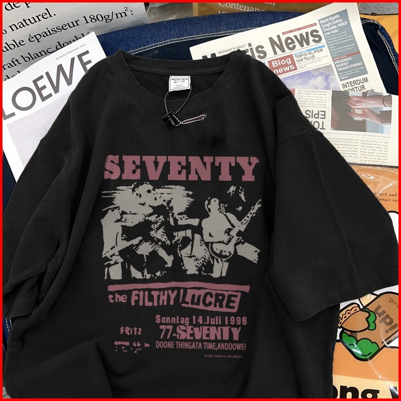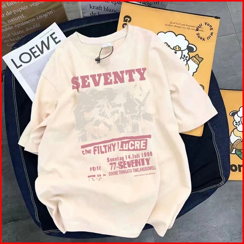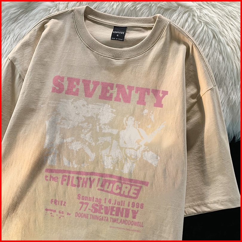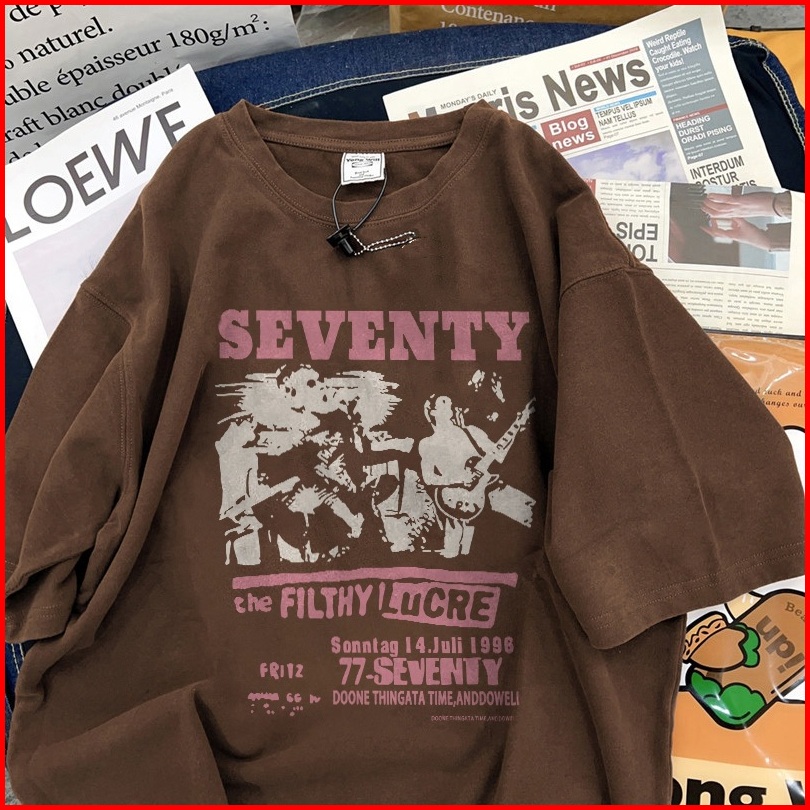 Fastfash Baju Kaos Pria Dan Wanita Lengan Pendek Oversize Vintage Pola Seventy Bergaya Netral T Shirt Pria Atasan Coklat