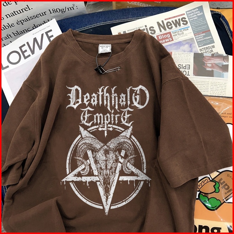 Fastfash Baju Kaos Pria Dan Wanita Lengan Pendek Oversize Vintage Pola Pentagram Bergaya Netral T Shirt Pria Atasan Cokl