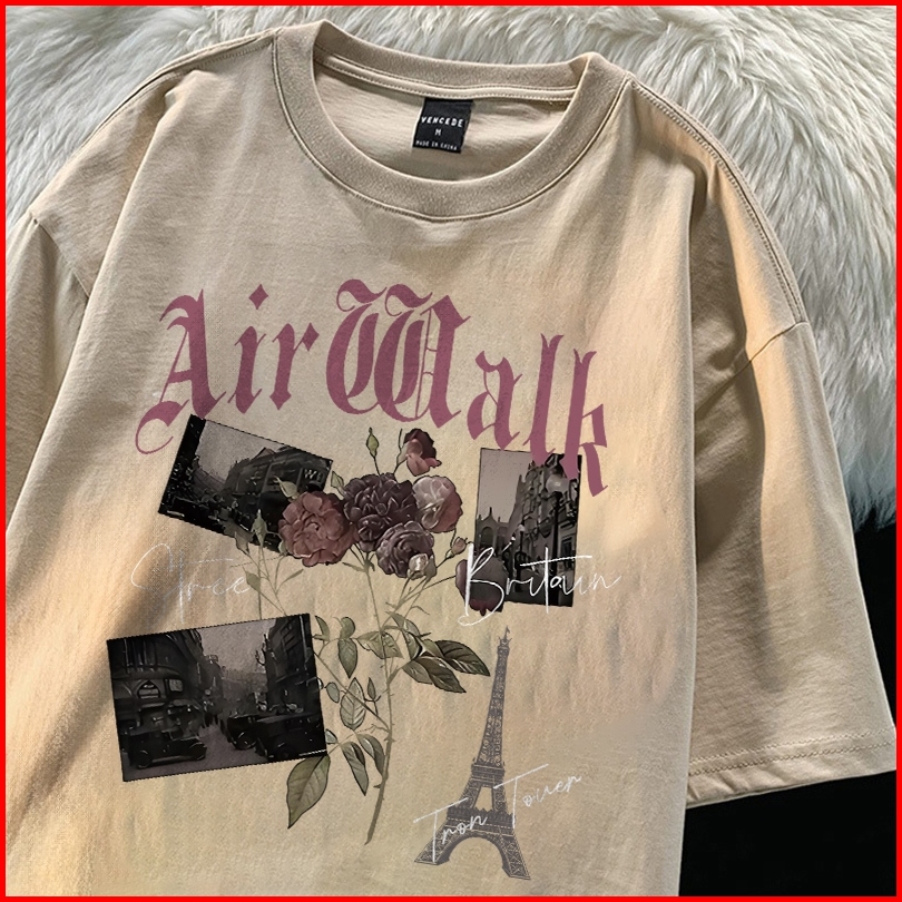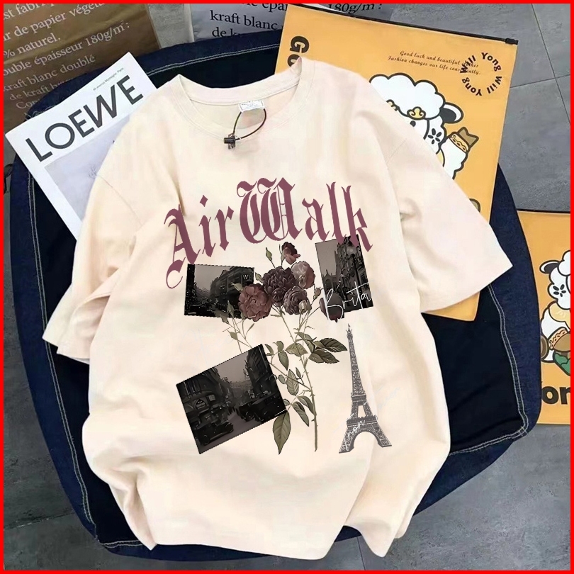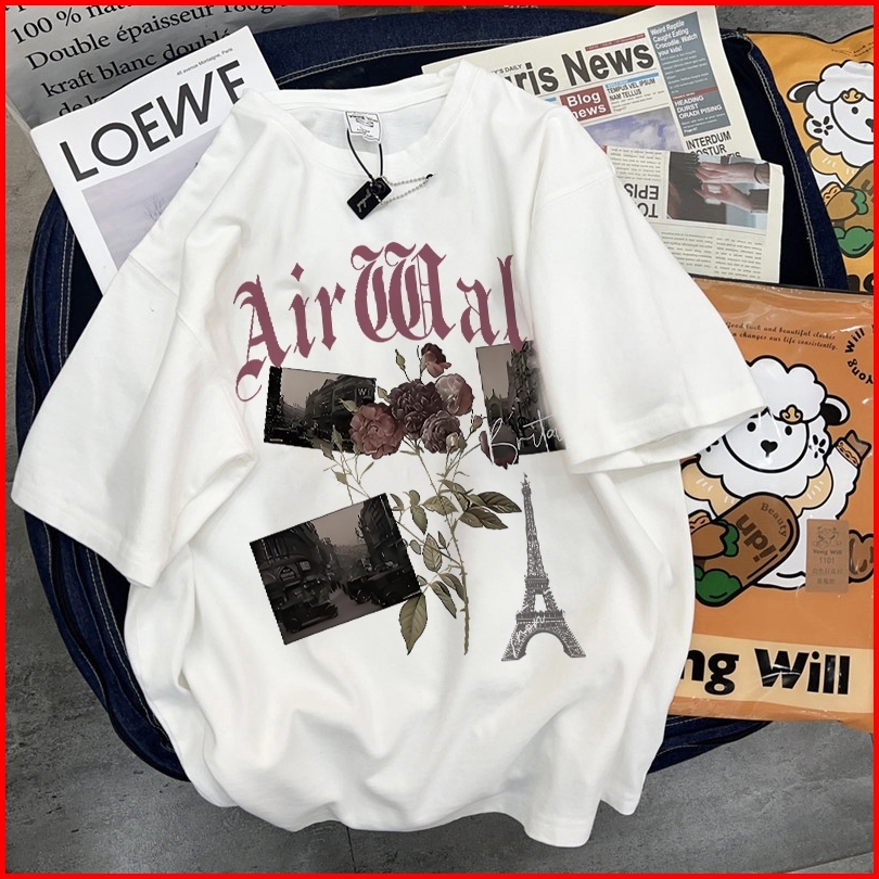 Fastfash Baju Kaos Pria Dan Wanita Lengan Pendek Oversize Vintage Mawar. Menara Eiffel Netral T Shirt Pria Atasan Cokela