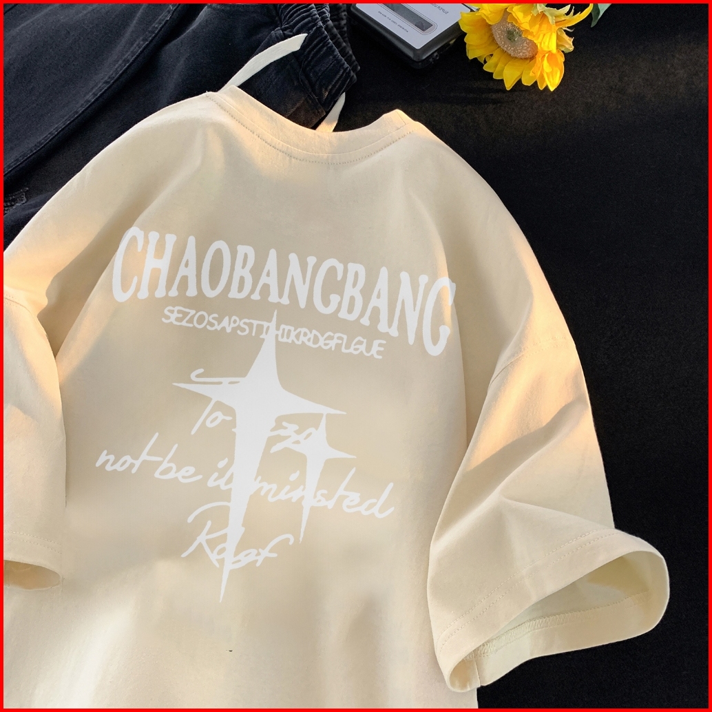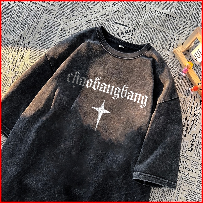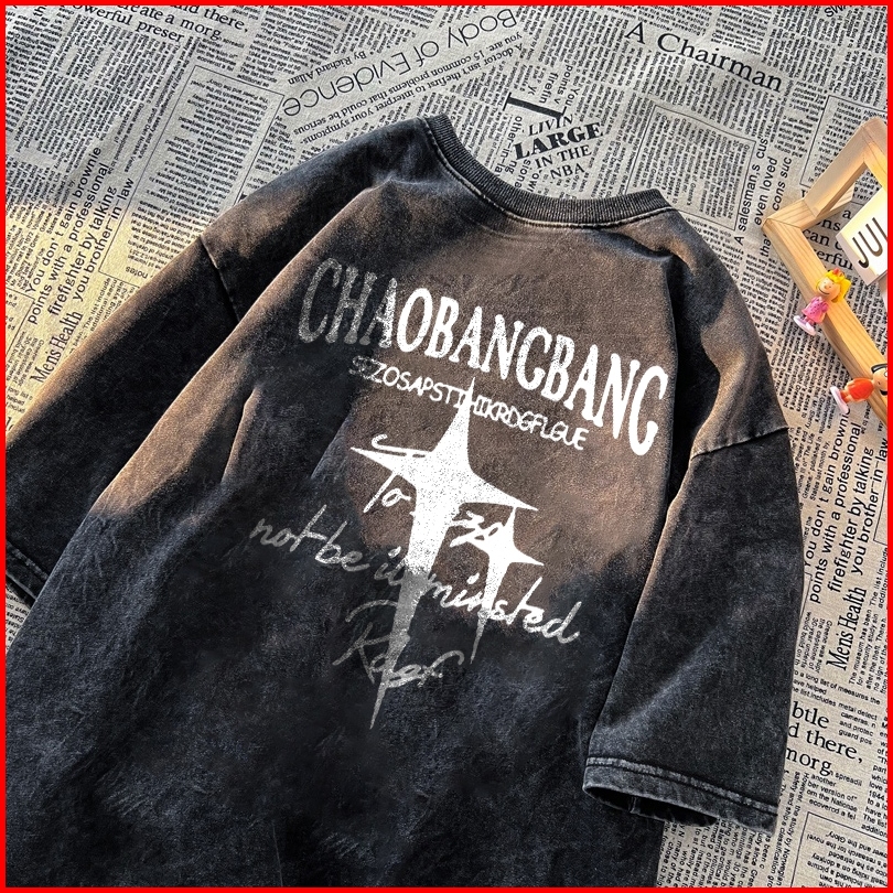 Fastfash Baju Kaos Pria Dan Wanita Lengan Pendek Oversize Vintage Cetak Chaobancbang Netral T Shirt Pria Atasan Washed H