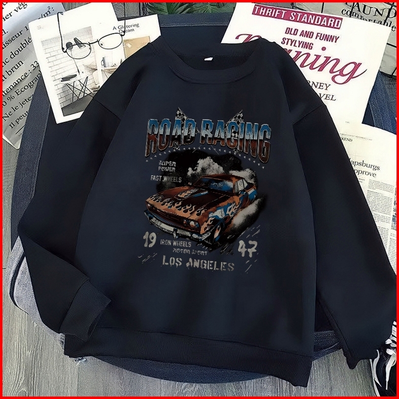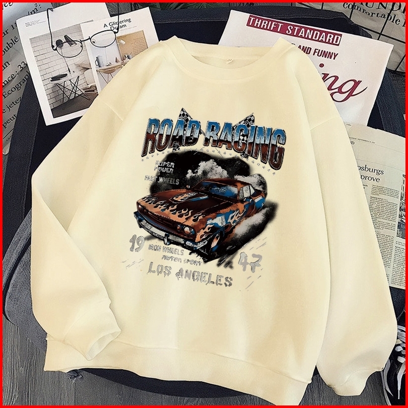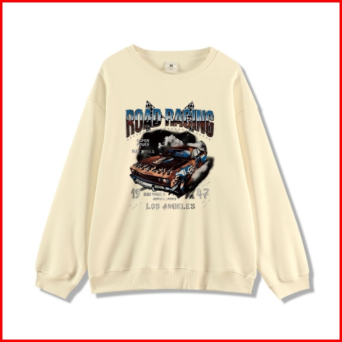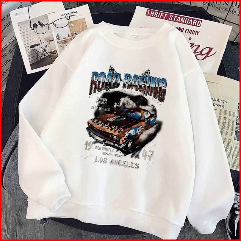 Fastfash Crewneck Sweater Pria Dan Wanita Lengan Panjang Lengan Panjang Oversize Road Racing Switer Crewneck Netral Unis