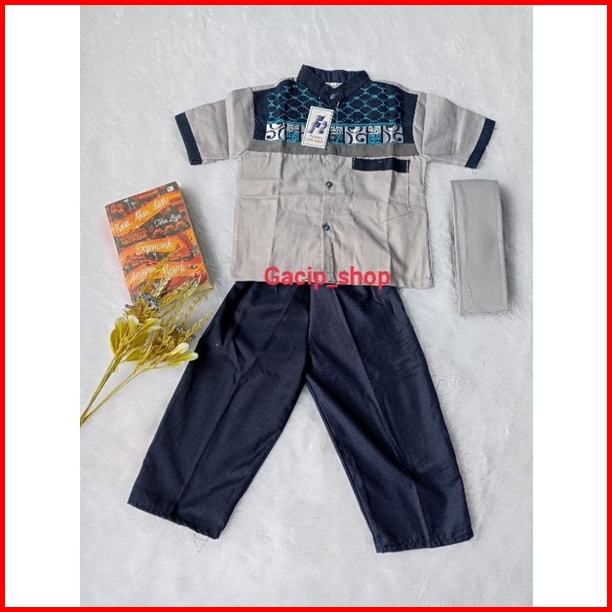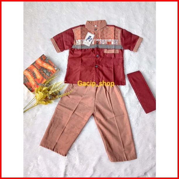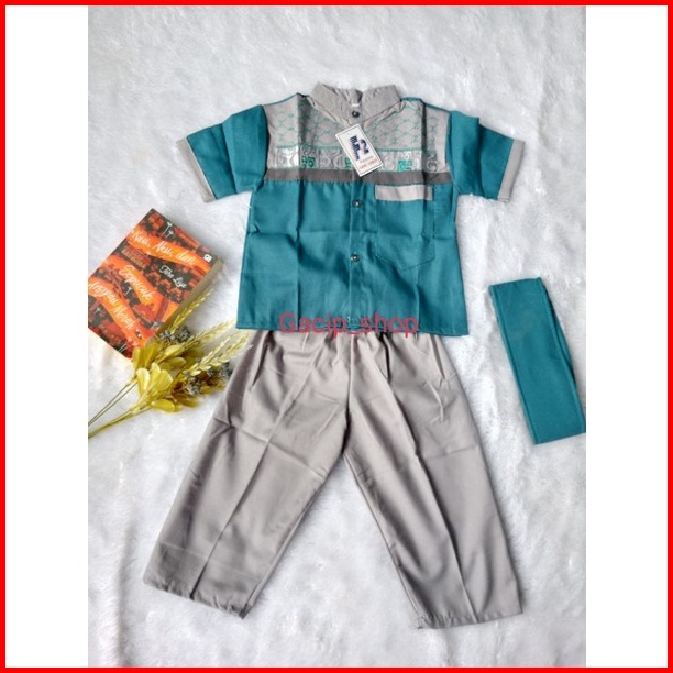Baju Koko Anak Bordir Lengan Pendek Kombinasi Dua Warna F2