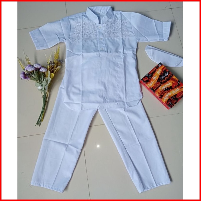 Baju Koko Putih Anak Laki Laki Lengan Pendek Size 3-12thn Model Kurta