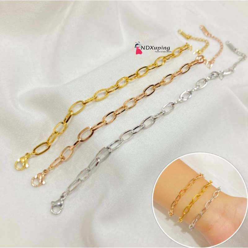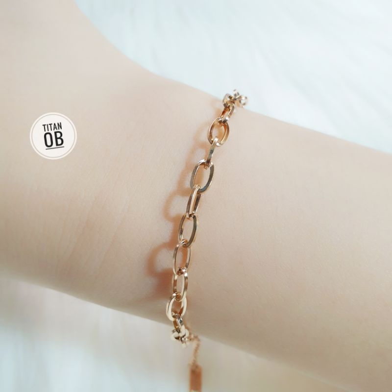 Gelang Rantai Titanium Gold dan Rosegold Polos N10122105