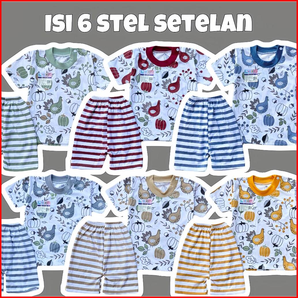 Isi 6 Stel Setelan Bayi Baru Lahir Setelan Kaos Oblong Bayi Lengan Pendek Celana Pendek Bayi 3-12 Bulan - Ayakan Baby