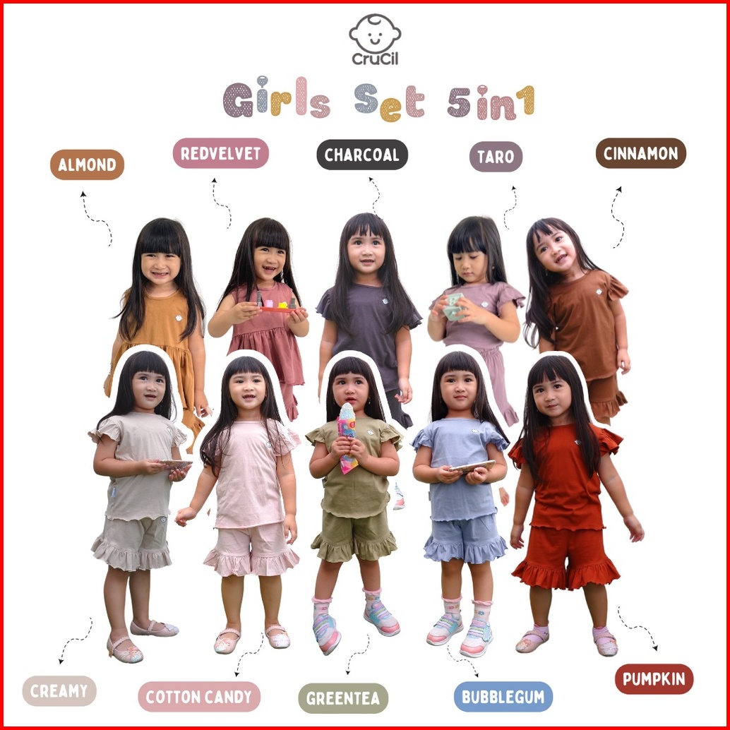 Crucil Factory Baju Kaos Anak Basic Set Girls 5in1 6m - 8y
