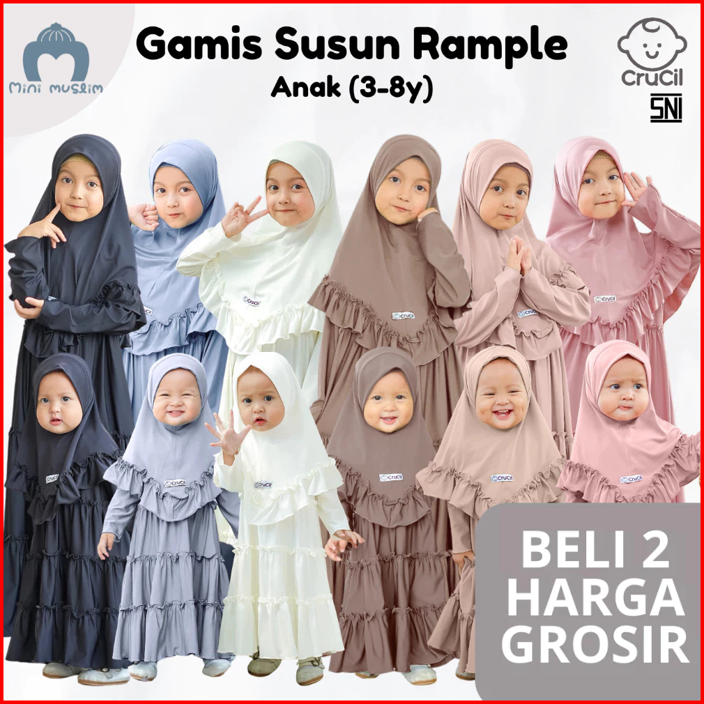 Crucil Factory Baju Gamis Susun Rample Anak 3y - 8y