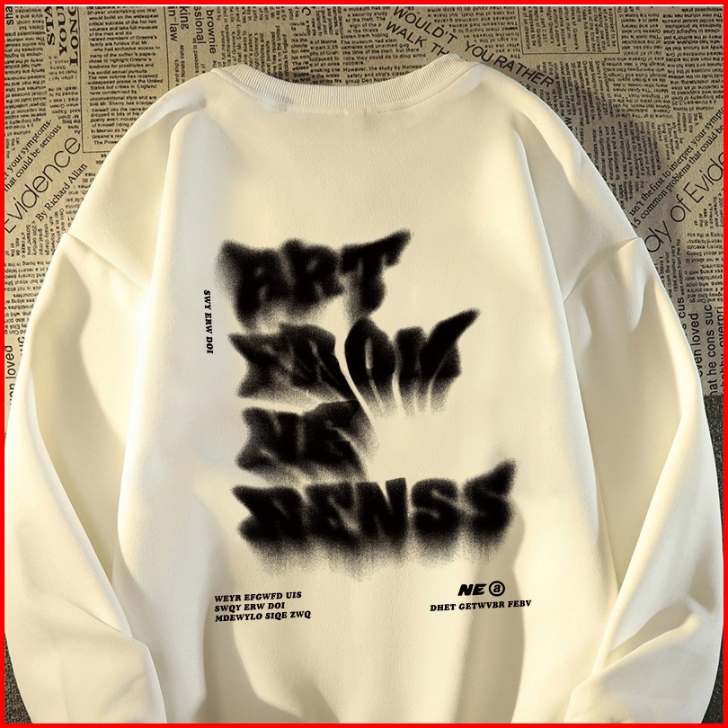 Fastfash Crewneck Sweater Pria Dan Wanita Lengan Panjang Lengan Panjang Oversize Huruf Artistik Kabur Switer Crewneck Ne