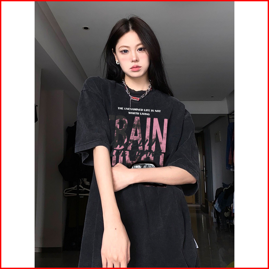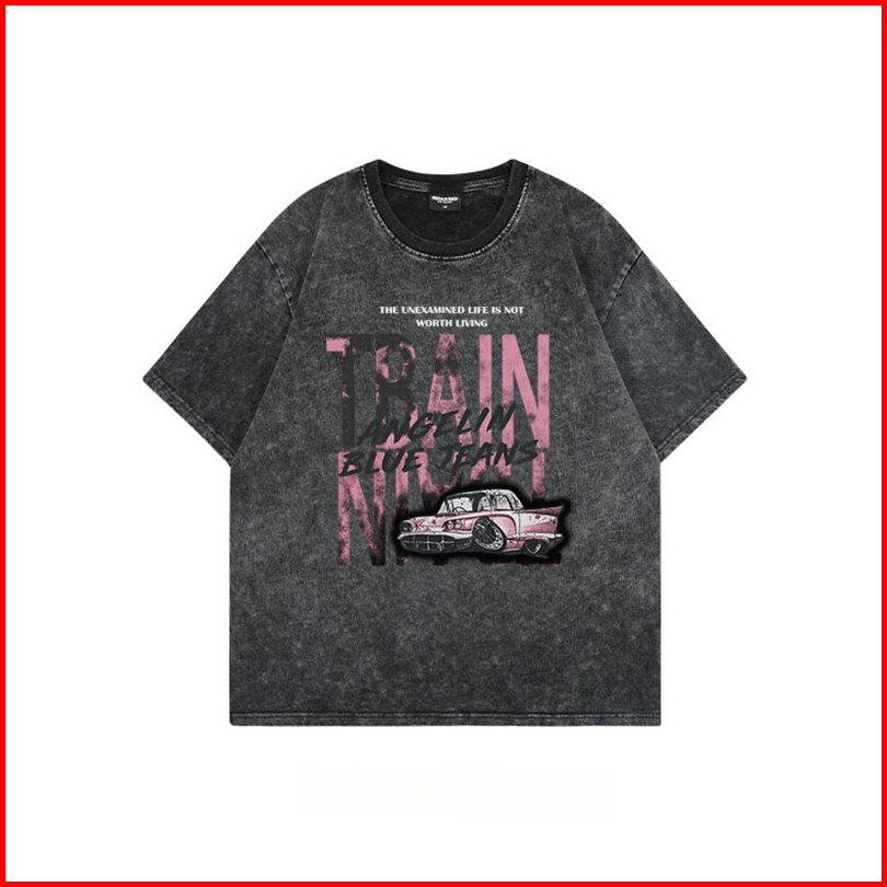 Fastfash Washed T-shirt 100 Cotton Baju Kaos Oversize Unisex Kaos Retro Car Katun Pria Dan Wanita