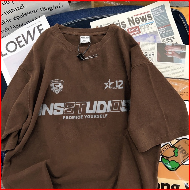 Fastfash Baju Kaos Pria Dan Wanita Lengan Pendek Oversize Vintage Ins Studiosbergaya Netral T Shirt Pria Atasan Cokelat