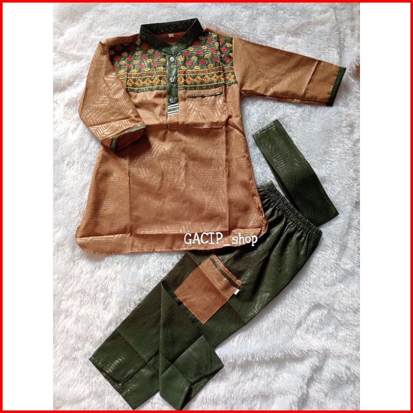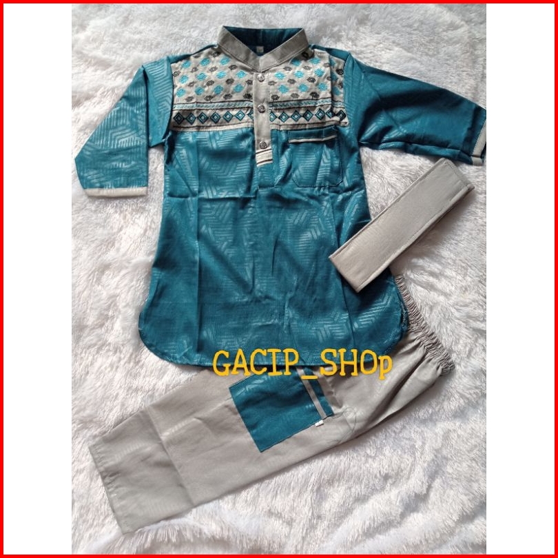 Baju Koko Anak Laki Laki Kombinasi 2 Warna Lengan Panjang