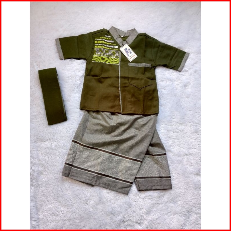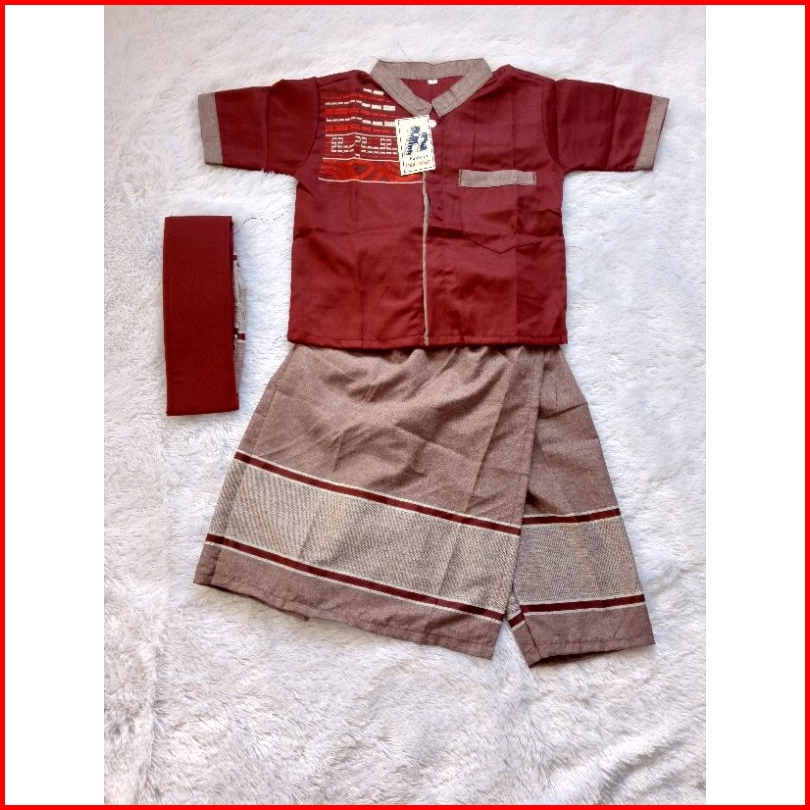 Baju Koko Anak Laki Laki Lengan Pendek Sarkoci Sarung Koko Peci No