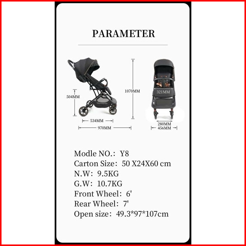 Termurah Stroller Bayi Anak Cabin Size Baobaohao Y8 Kereta Dorong Premium Stoler Stroler
