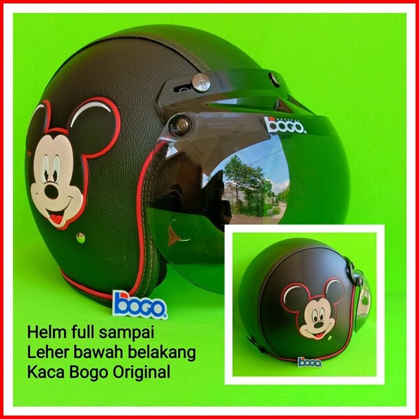 Helm Bogo Retro Kulit Dewasa Kaca Bogo Original Motif Mickey Mouse Tpr Hitam