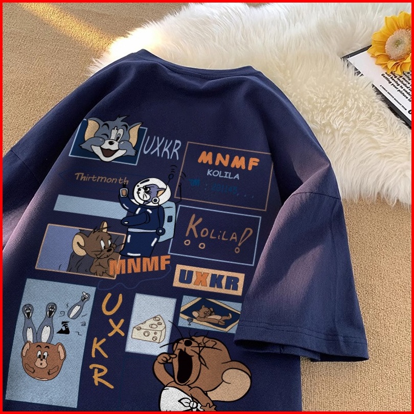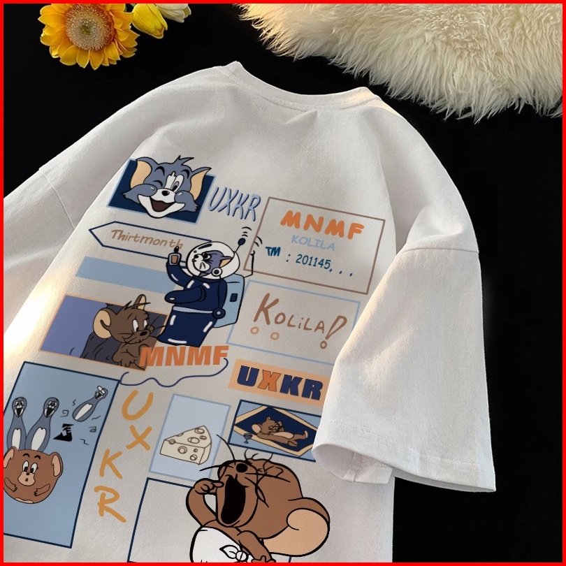 Fastfash Kaos Lengan Pendek Pakaian Pria Dan Wanita Oversize Vintage Cetakan Tom Dan Jerry Bergaya Netral - Baju Kaos Cr