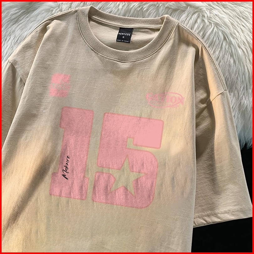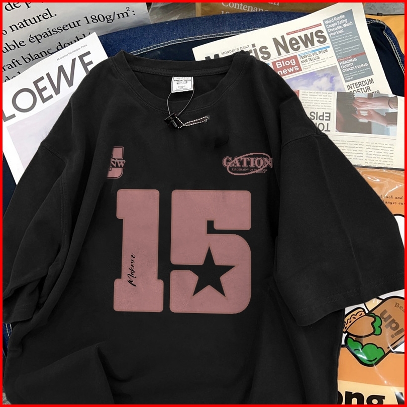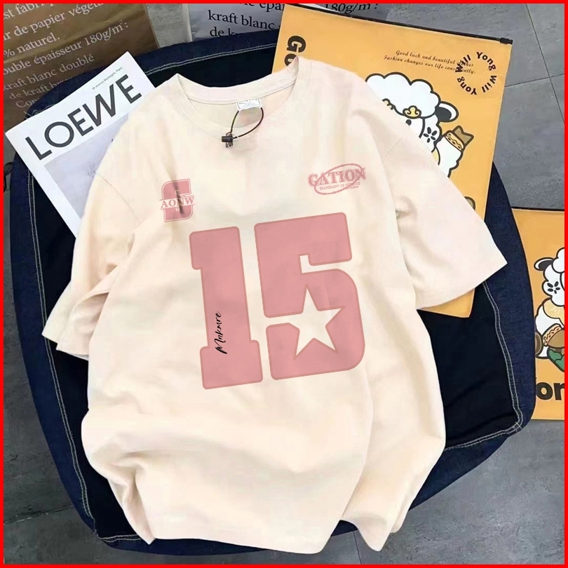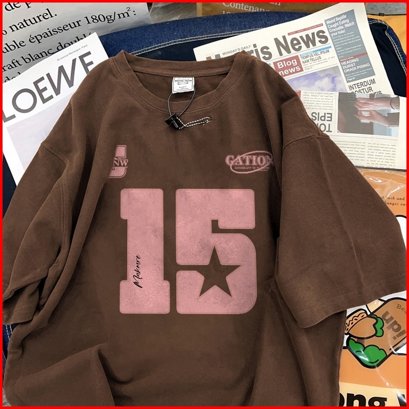 Fastfash Baju Kaos Pria Dan Wanita Lengan Pendek Oversize Vintage Star 15 Numbers Netral T Shirt Pria Atasan Cokelat Cow