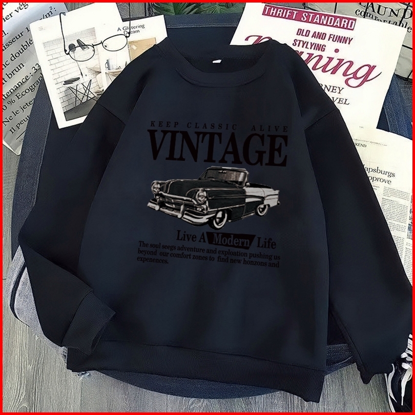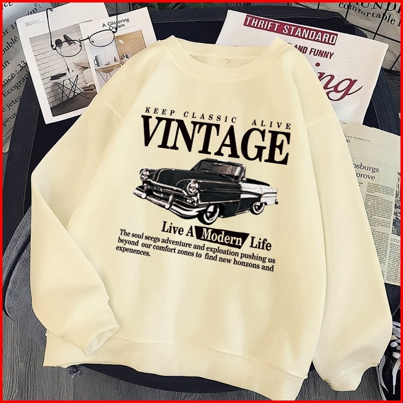 Fastfash Crewneck Sweater Pria Dan Wanita Lengan Panjang Lengan Panjang Oversize Vintage Switer Crewneck Netral Unisex R