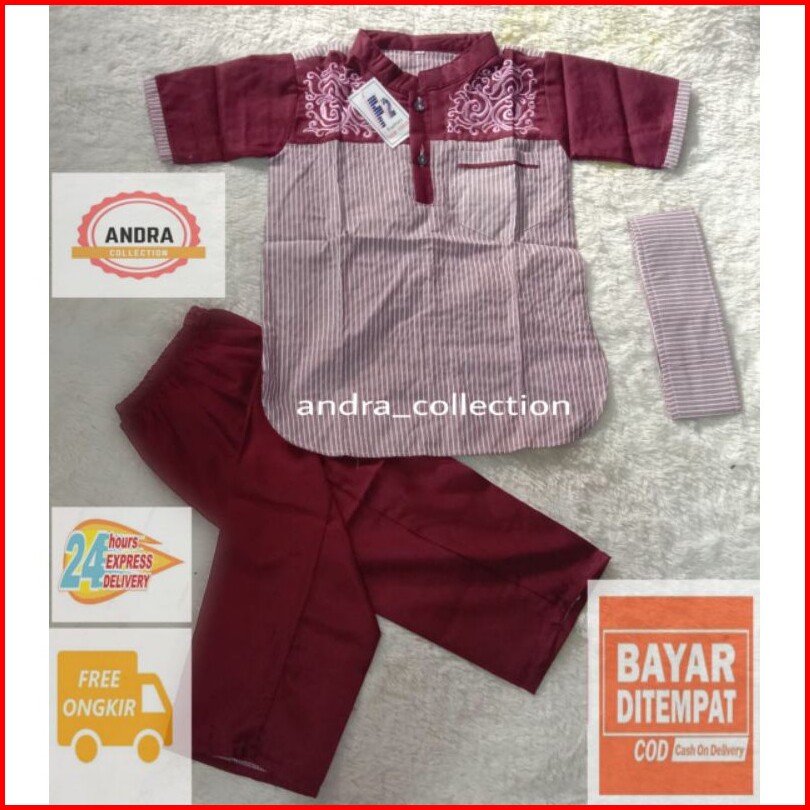 Baju Koko Anak Laki Laki Setelan Muslim Motif Salur Lengan Pendek Murah Dan Terlaris