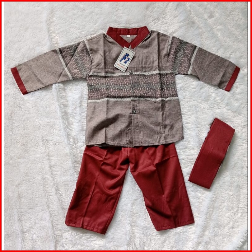 Baju Koko Anak Laki Laki Motif Songket Lebgan Panjang Full Kancing Usia 1-12 Thn