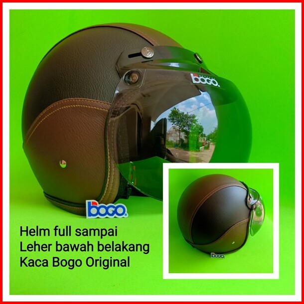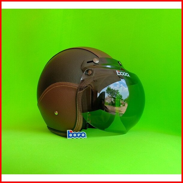Helm Bogo Retro Kulit Dewasa Kaca Bogo Original Warna Bawah Coklat Atas Hitam