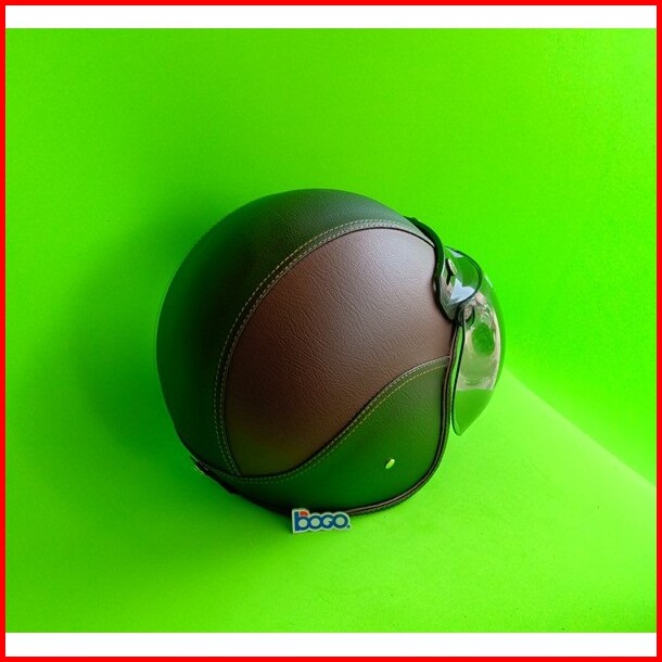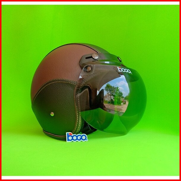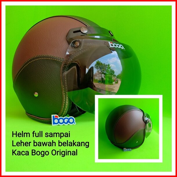 Helm Bogo Retro Kulit Dewasa Kaca Bogo Original Warna Bawah Hitam Atas Coklat