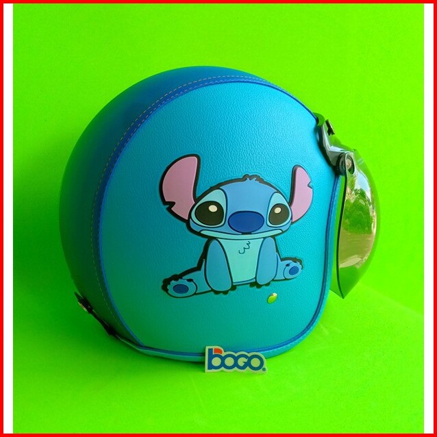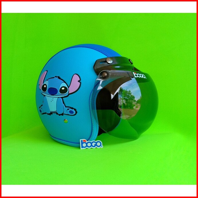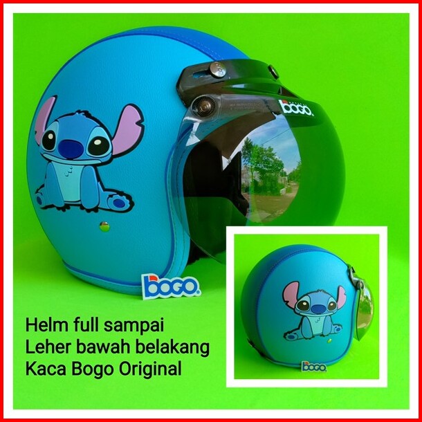 Helm Bogo Retro Kulit Dewasa Kaca Bogo Original Motif Stitch Tpr Biru Muda