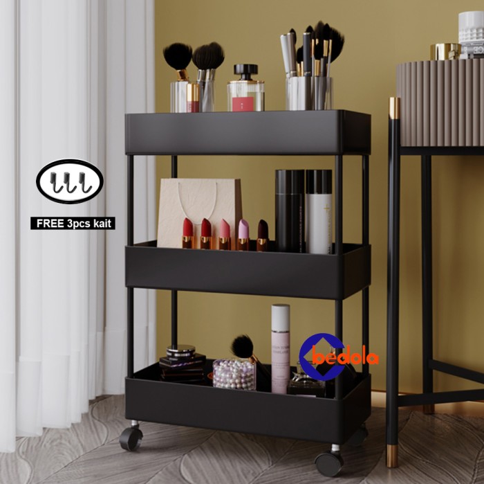 BEDOLA SQUARE RAK DAPUR SUSUN RAK TROLI RAK KAMAR MANDI 3 TINGKAT - HITAM
