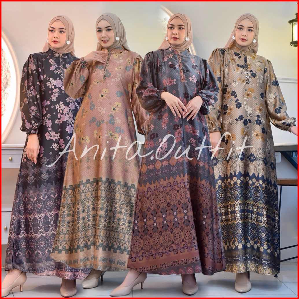 Gamis Silk Premium Zahra Gamis Wanita Mewah Gamis Wanita Muslim Seragaman Gamis Motif Grade A