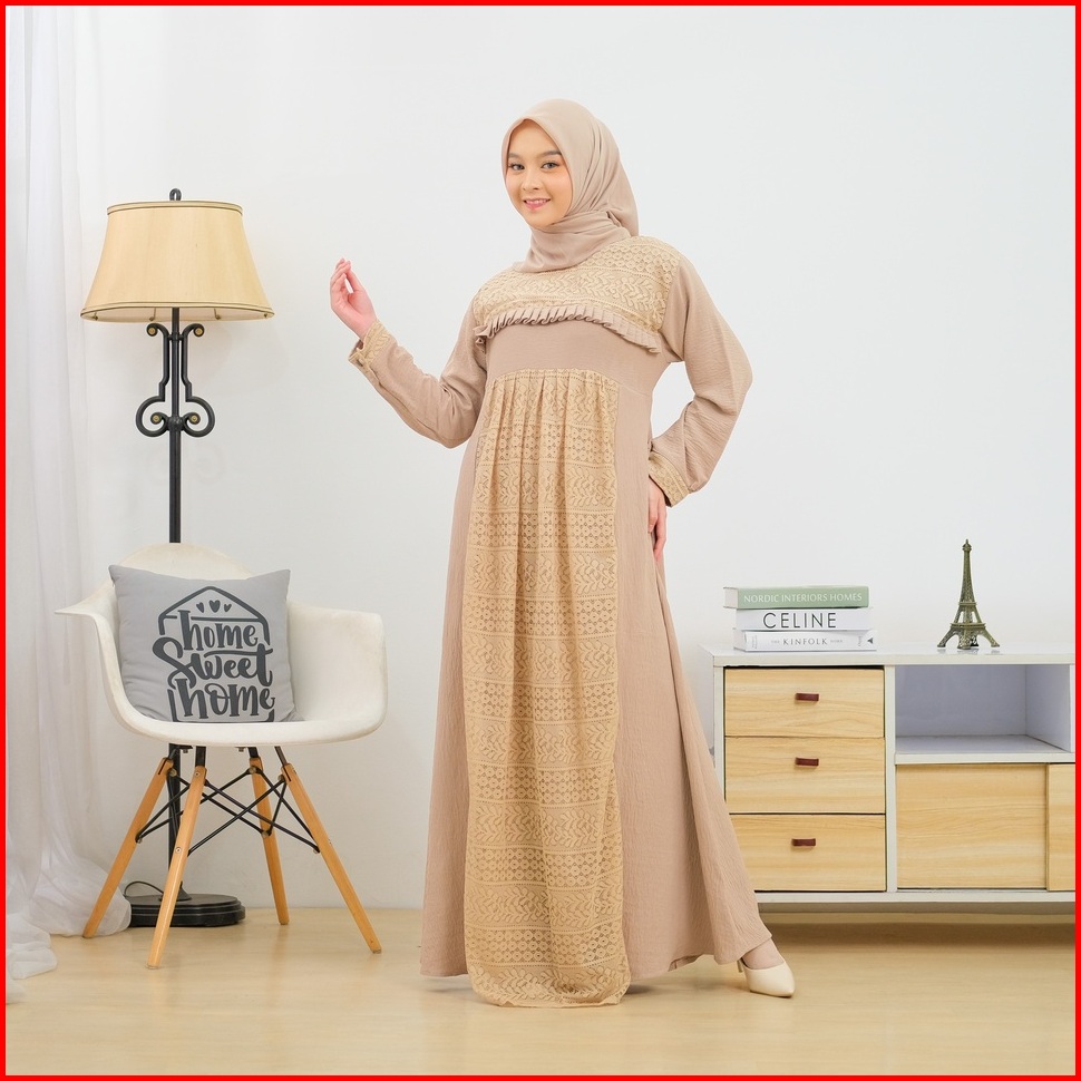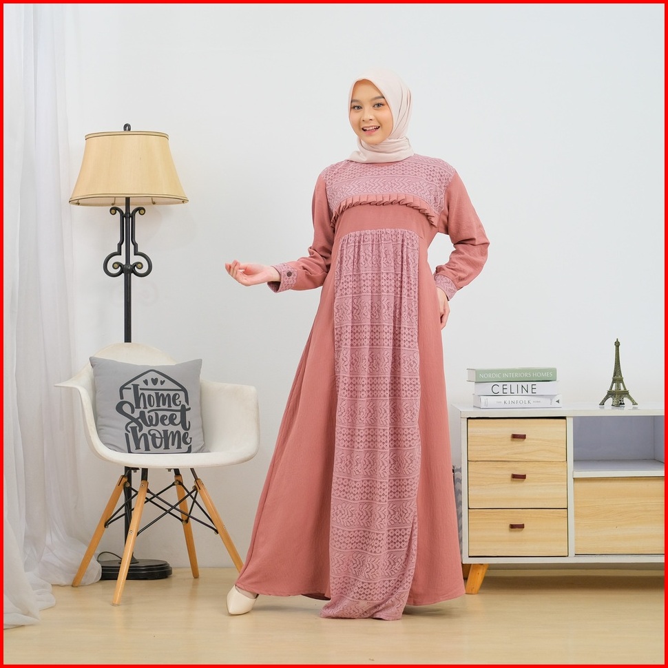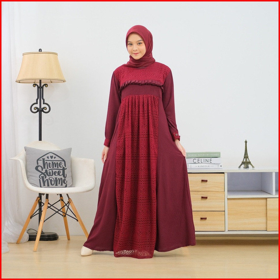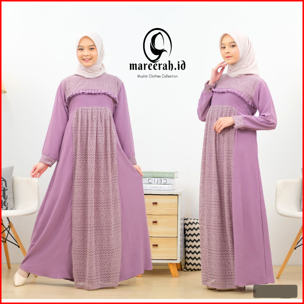 Mareerah.id - Gamis Krinkelmix Barukat Malika Lebaran Muslim Drees Viral 2024