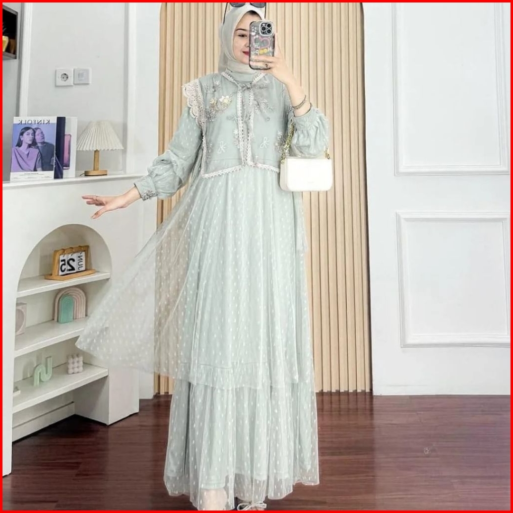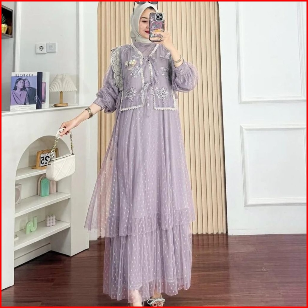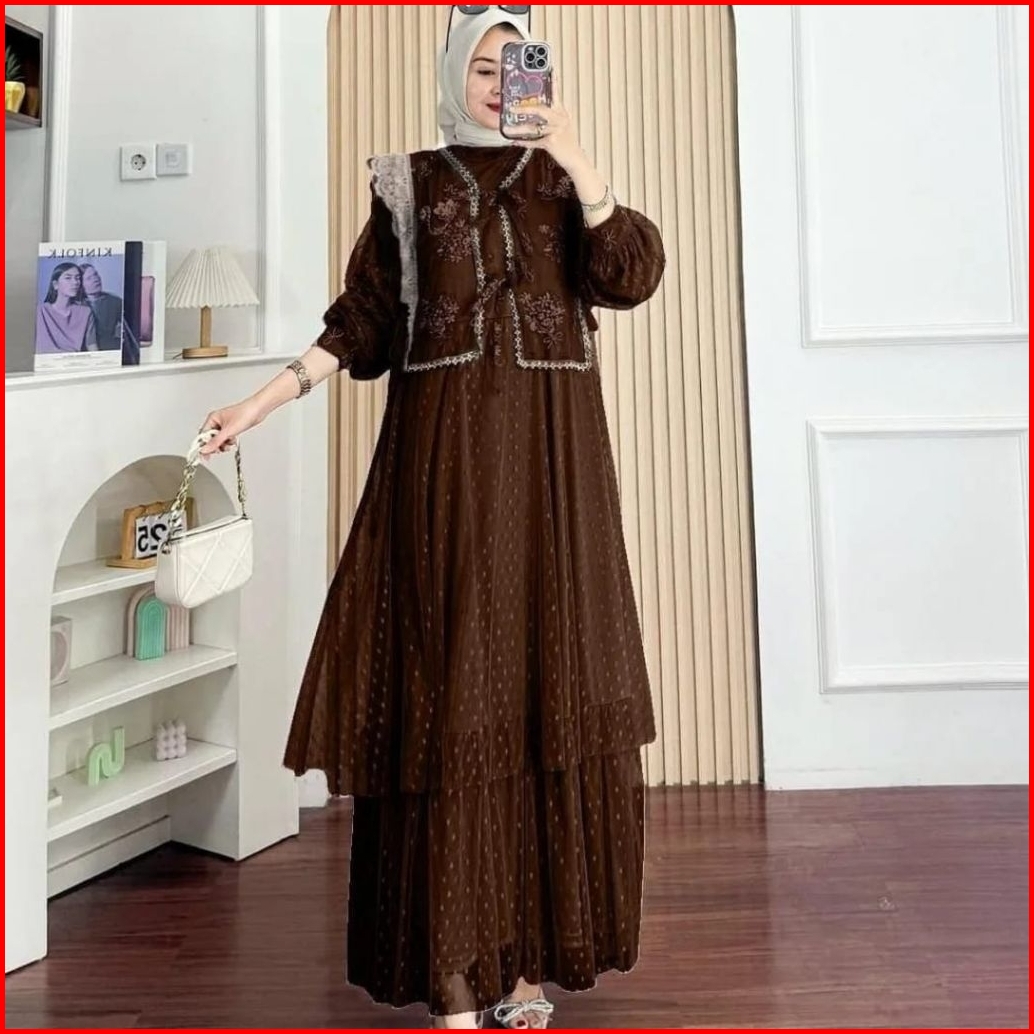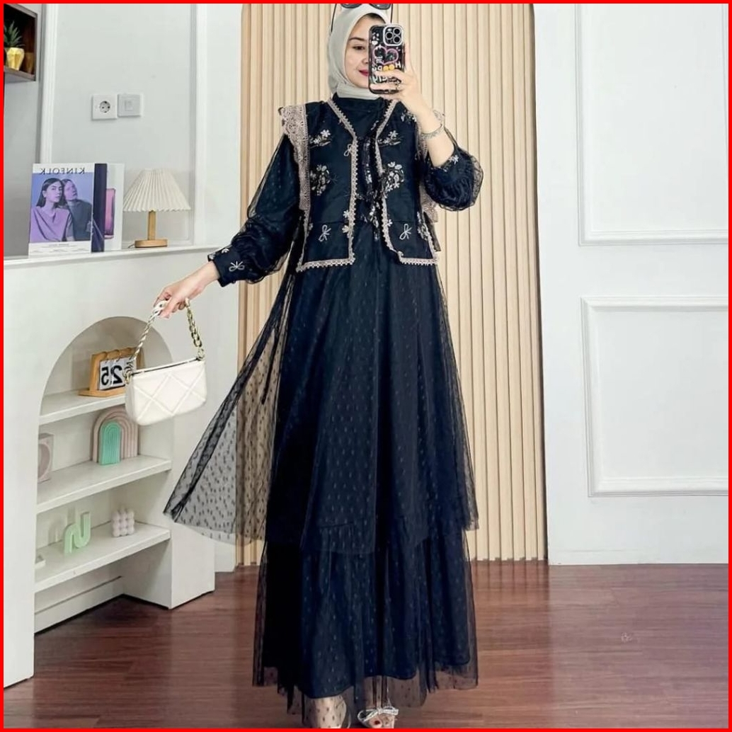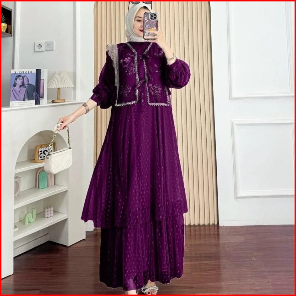 Sella Dress Gamis Burkat Mewah Elegan Dress Wanita Pesta Kondangan Rompi Bahan Premium Lembut