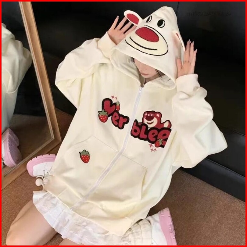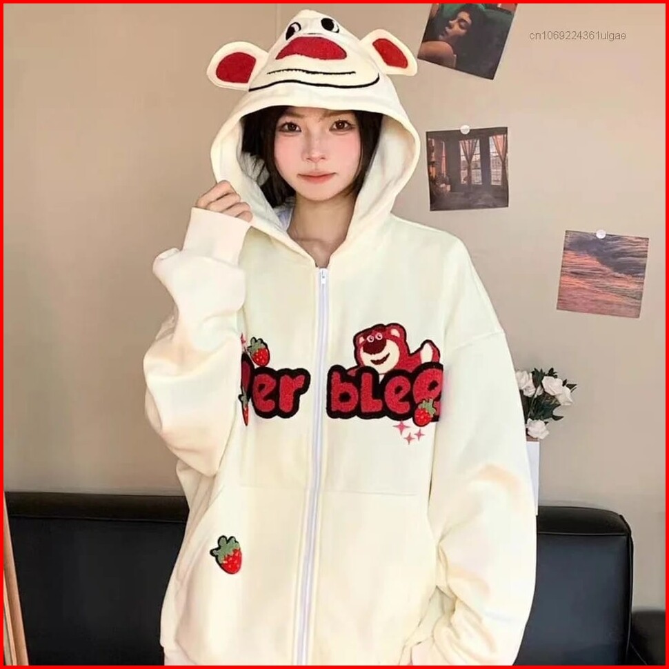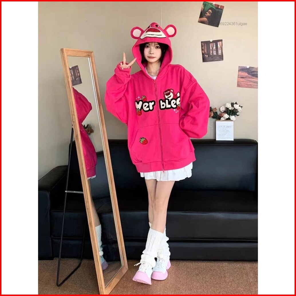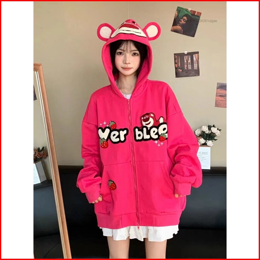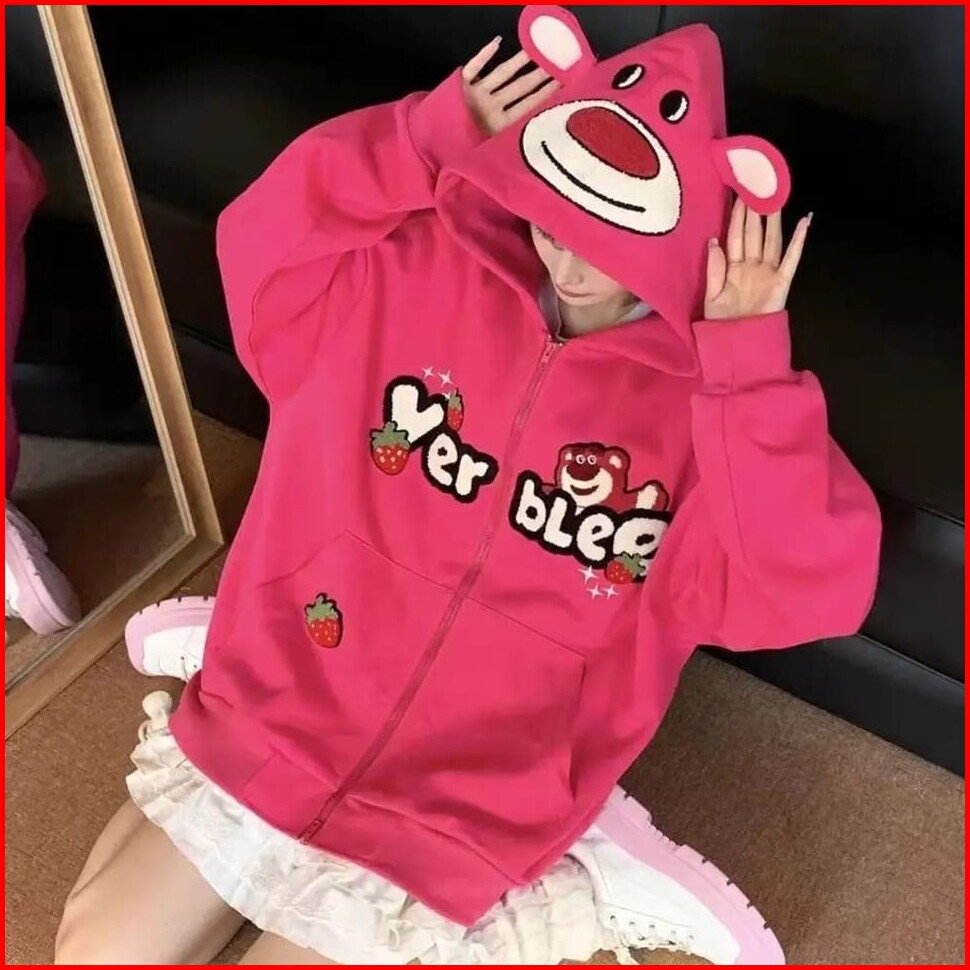 - Yer Blee Lotso Zipper Hoodie Outerwear Wanita Remaja Matt Fleece Tebal Premium Casual Daily