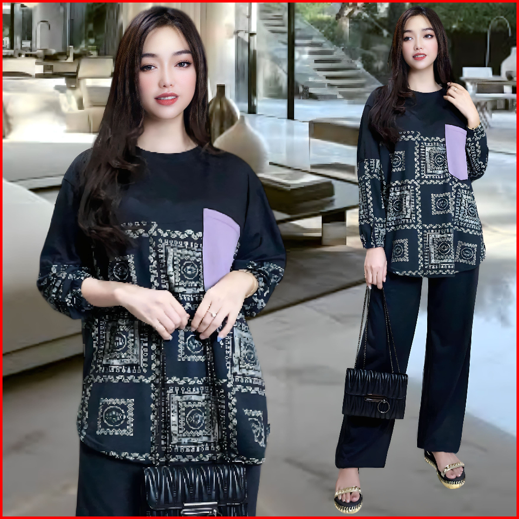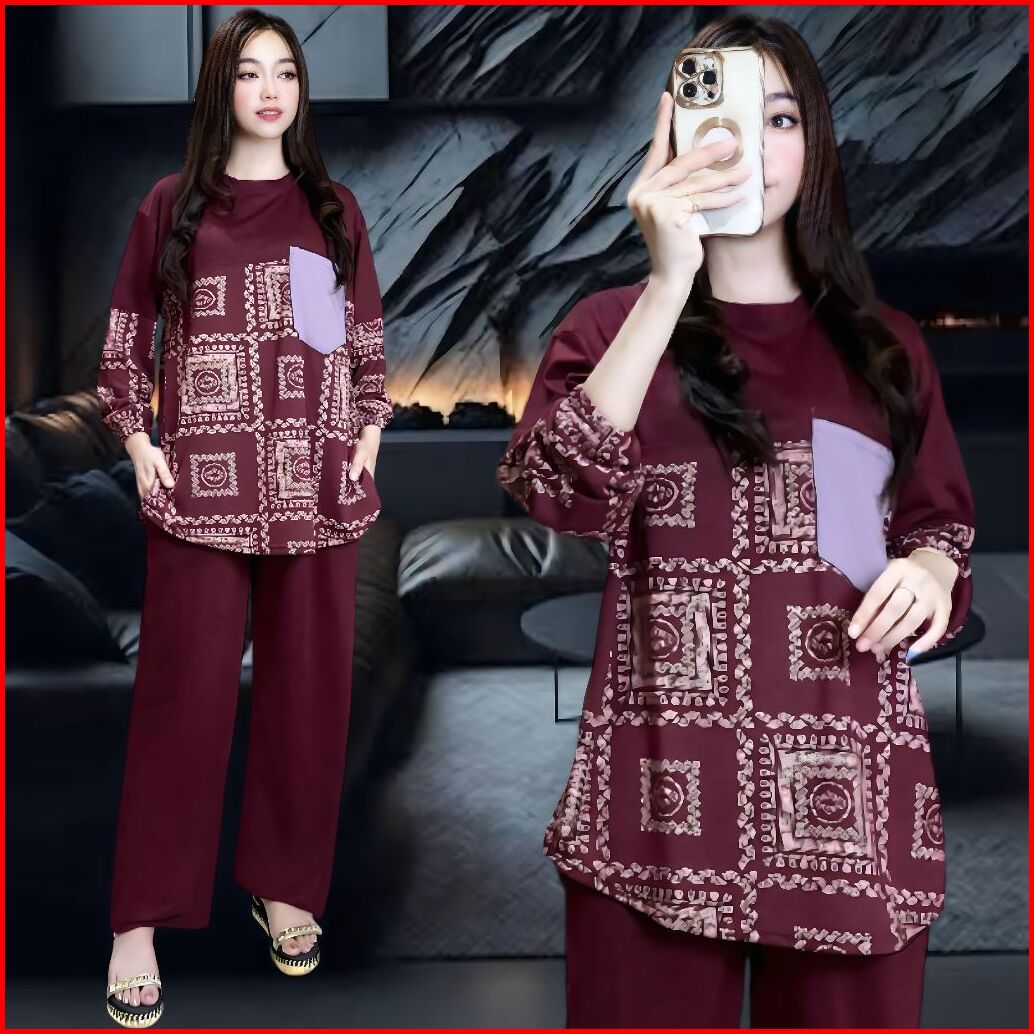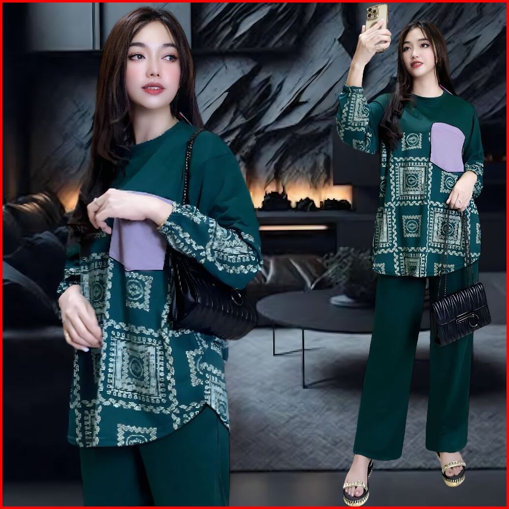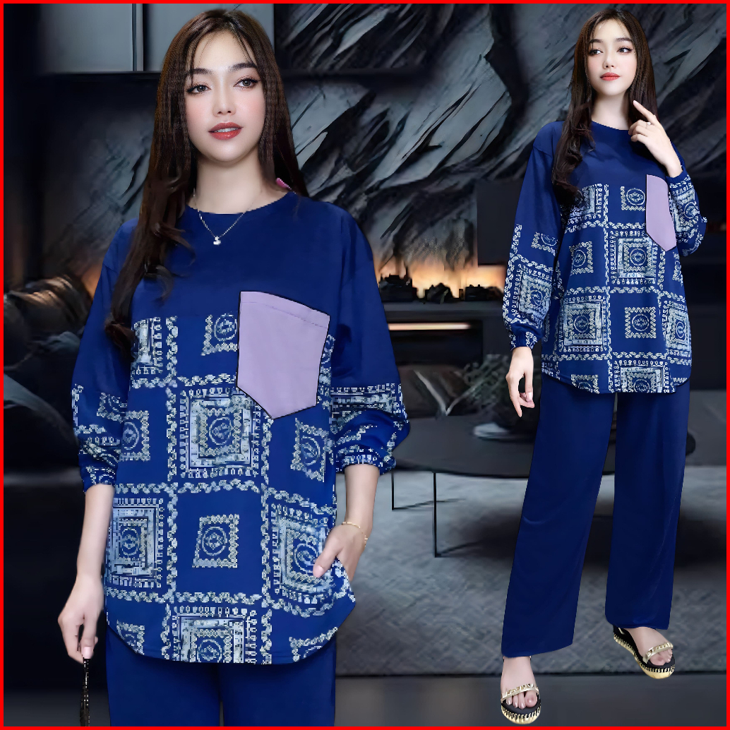 Hanna Setelan Wanita Ld 120 Ld 130 Celana Lurus Dan Atasan Oval Belahan Kiri Dan Kanan Oversize Wanita Celana Lurus Kare