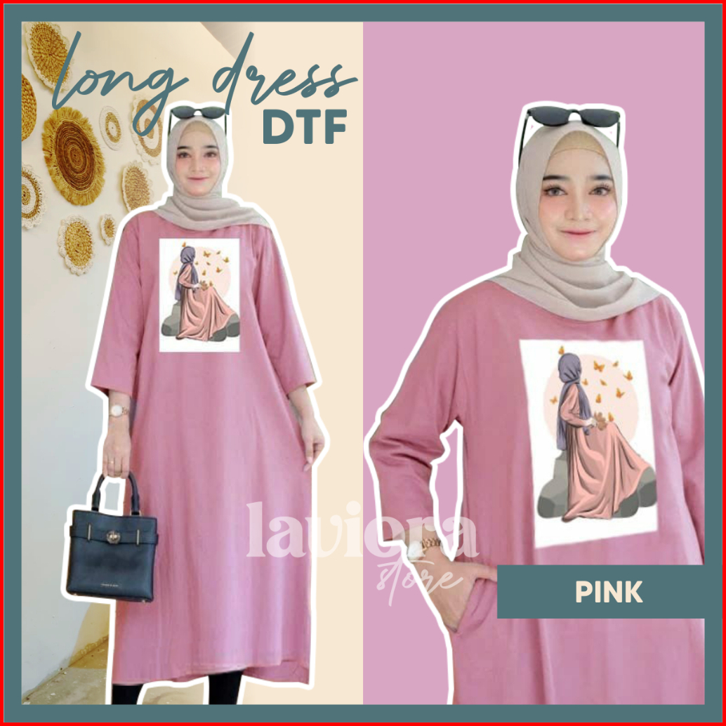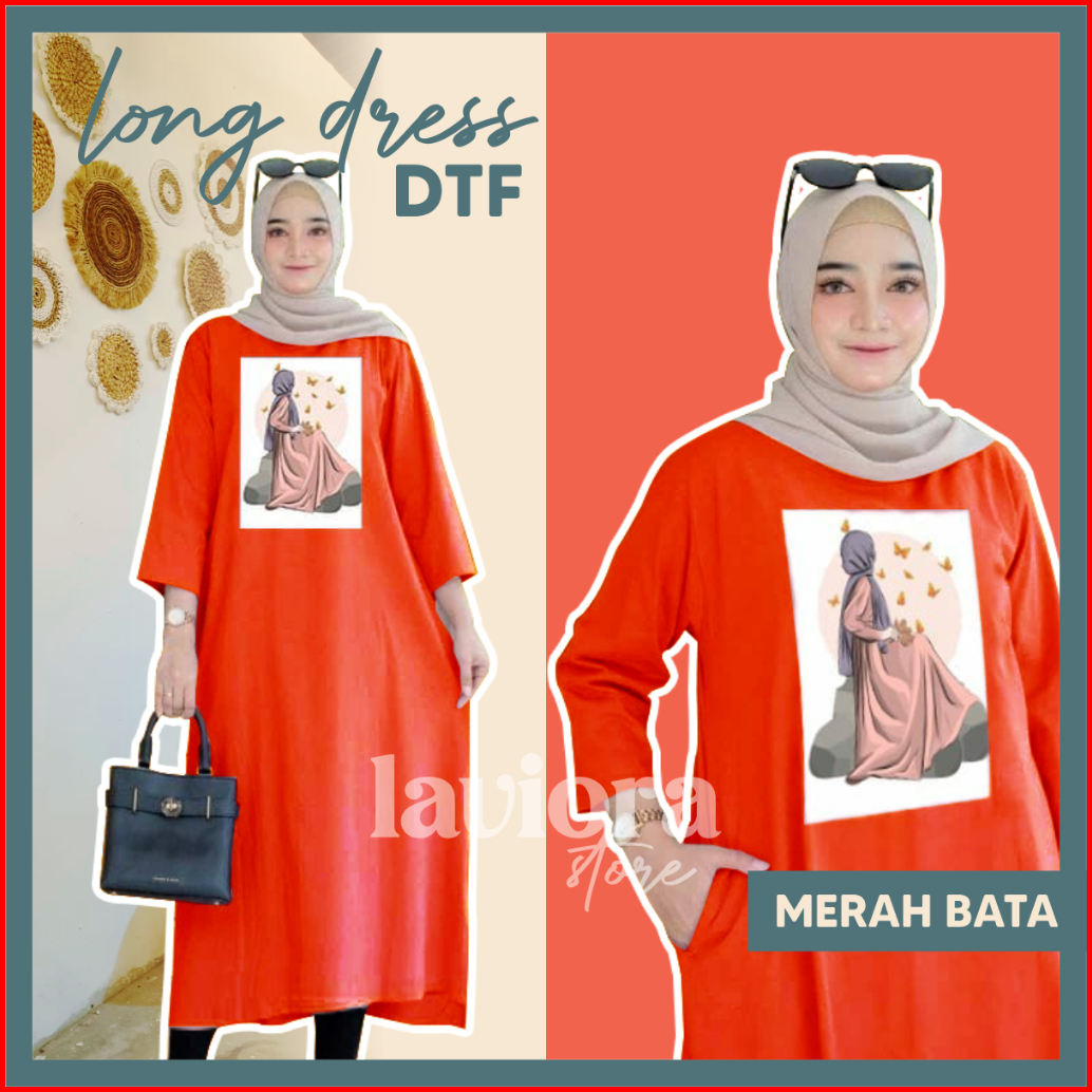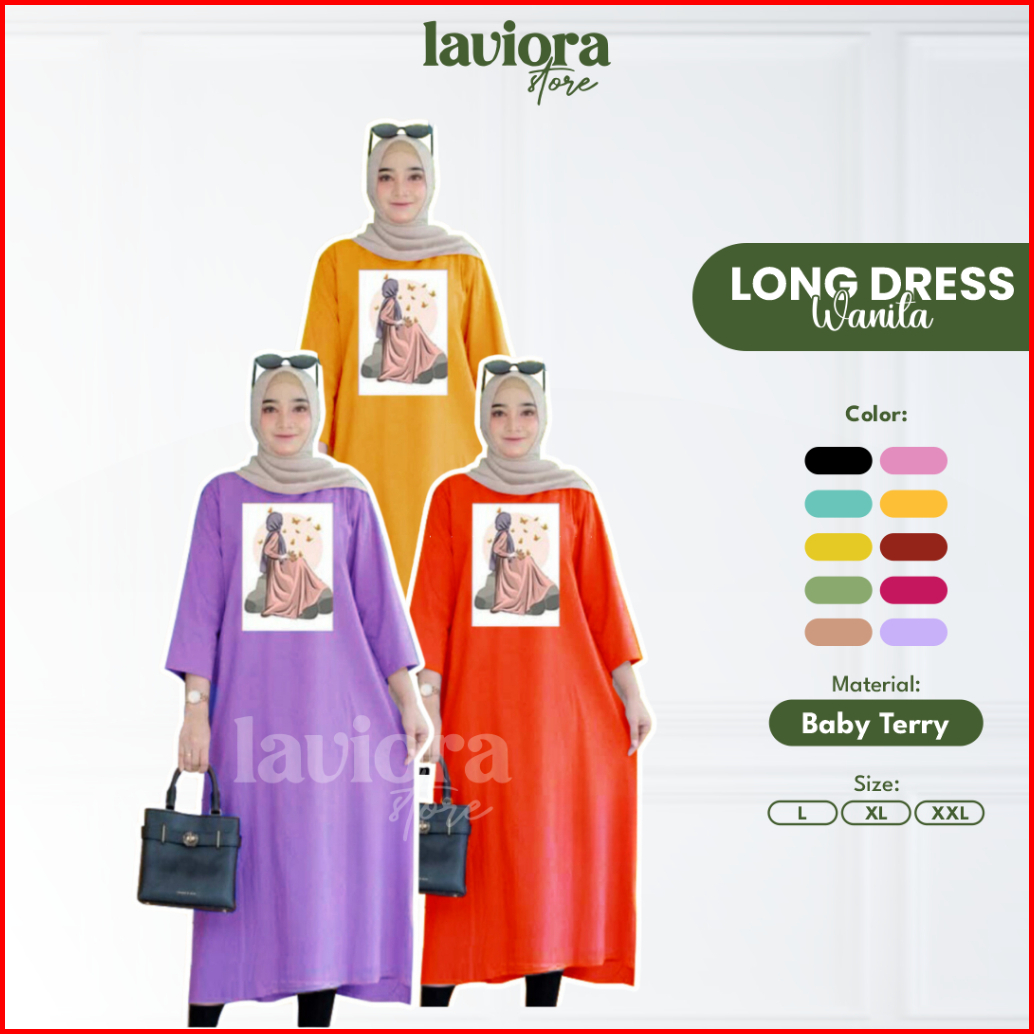 Dress Wanita Lengan 7 8 Long Dres Jumbo Motif Sablon Dtf One Size Bahan Baby Terry
