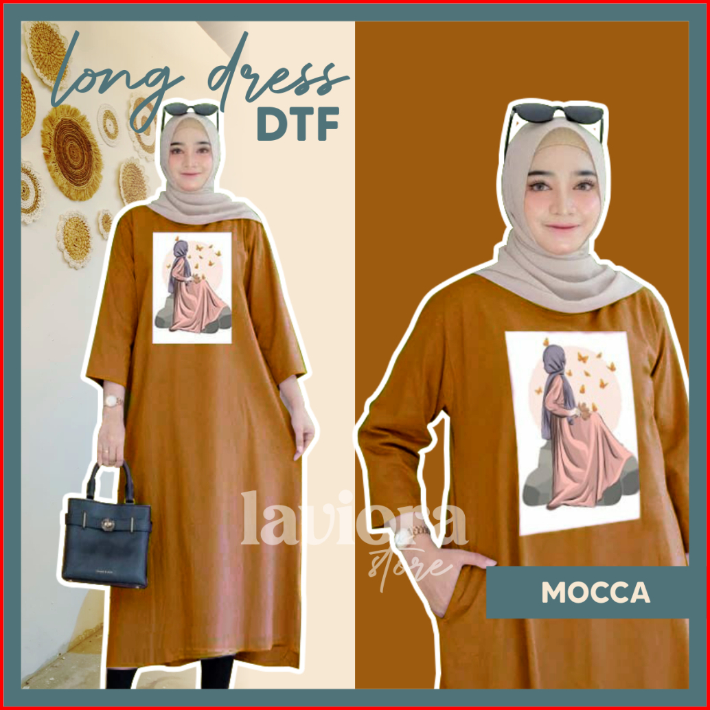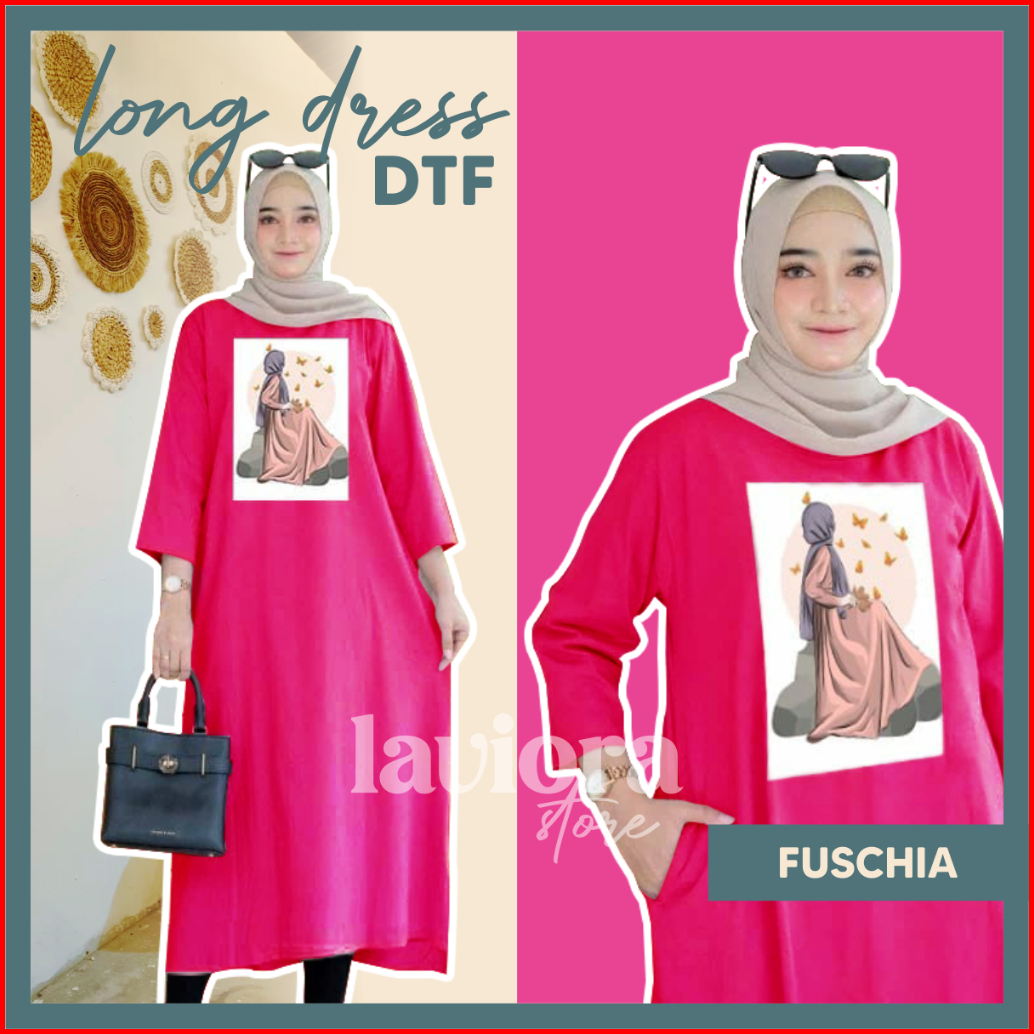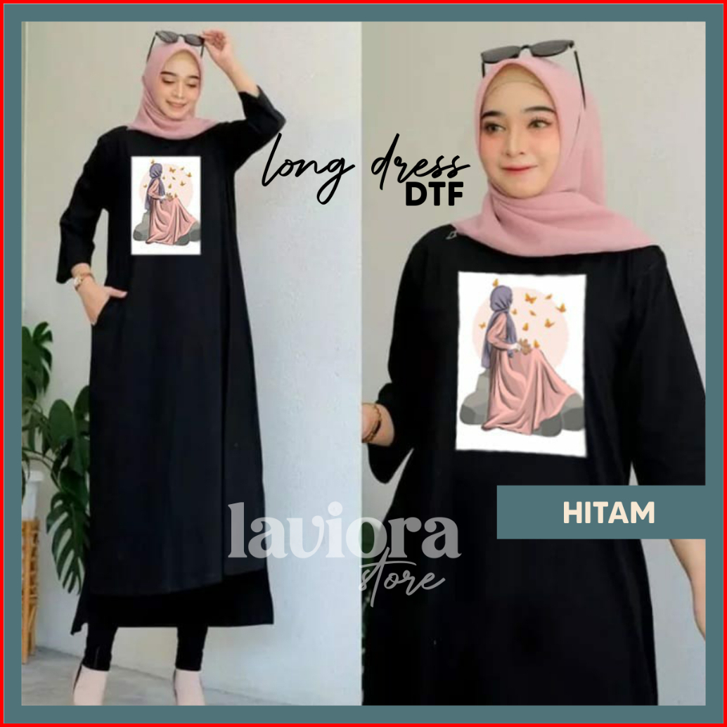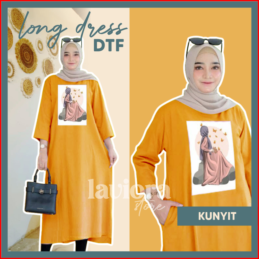 Dress Wanita Lengan 7 8 Long Dres Jumbo Motif Sablon Dtf One Size Bahan Baby Terry