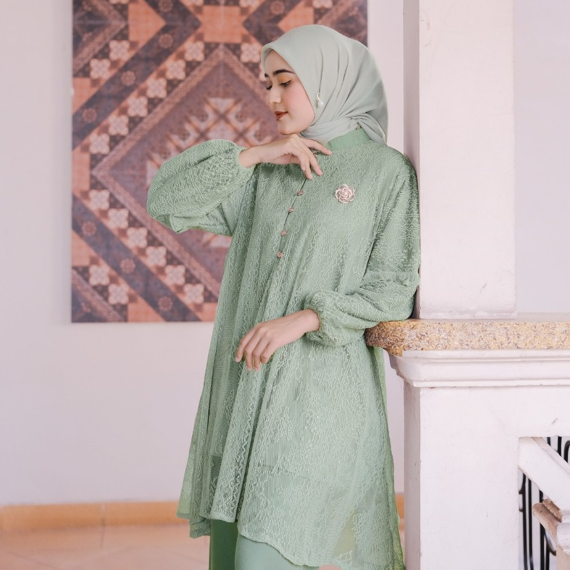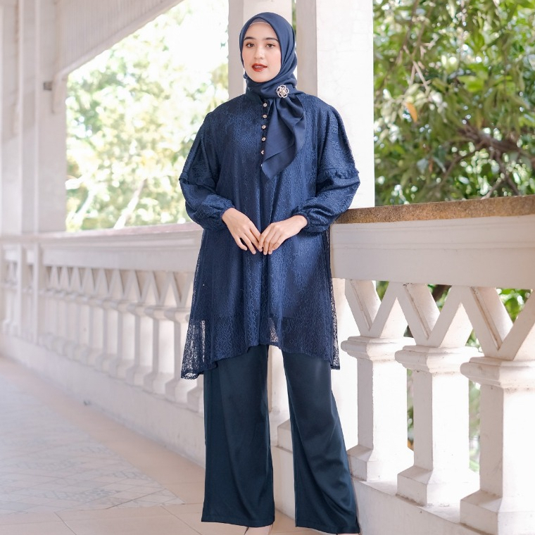 ( RAMADHAN SALE ) Ventedaily - Hansa One Set Brukat Setelan Kondangan Ibu Wanita Atasan Celana Outfit Kekinian Jumbo