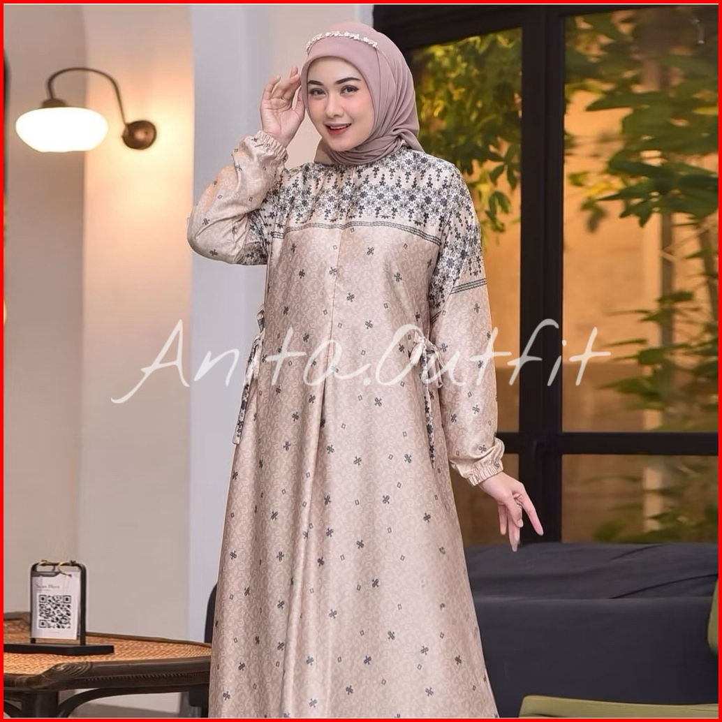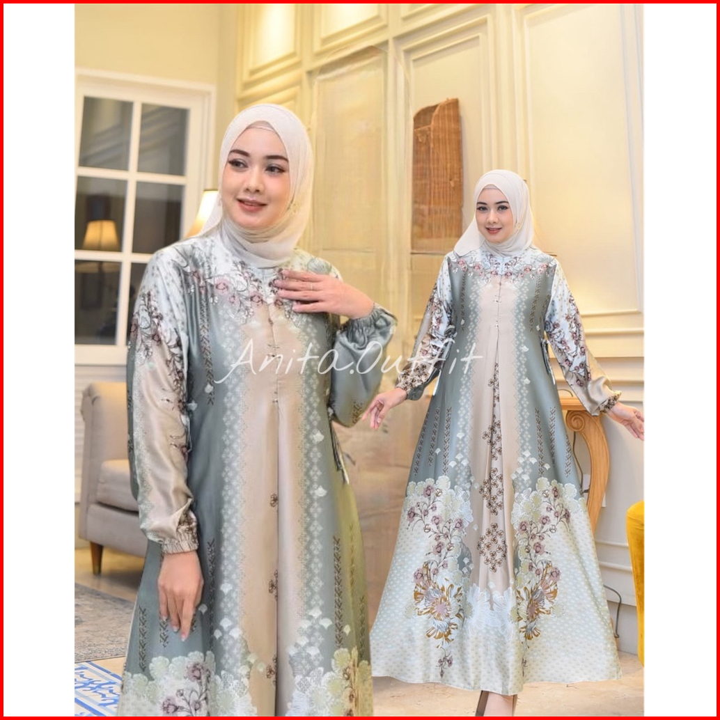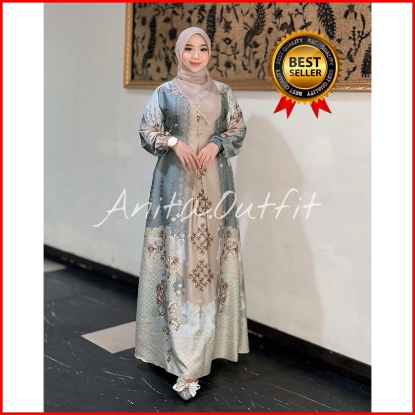 Dress Motif Terlaris Anita Outfit Bahan Silk Premium Motif Bunga Terbaru Mewah Dan Elegan