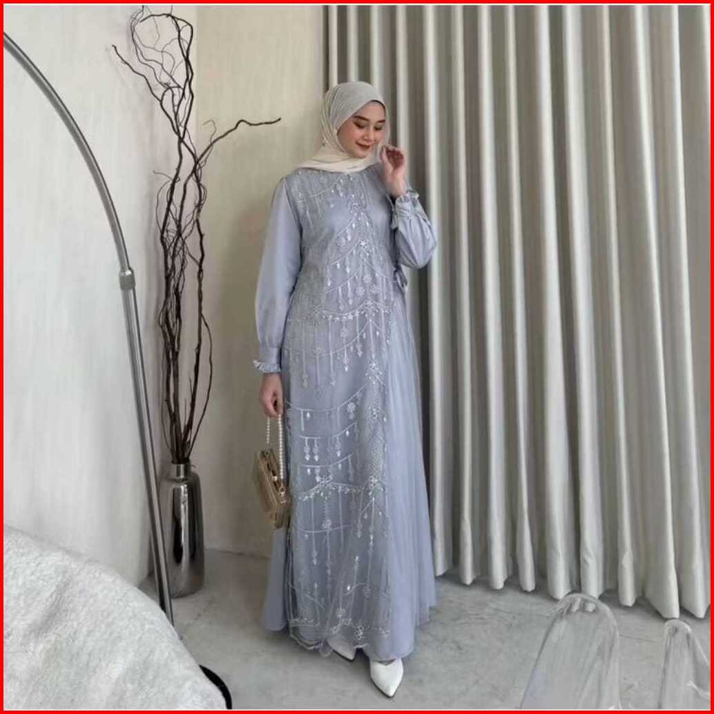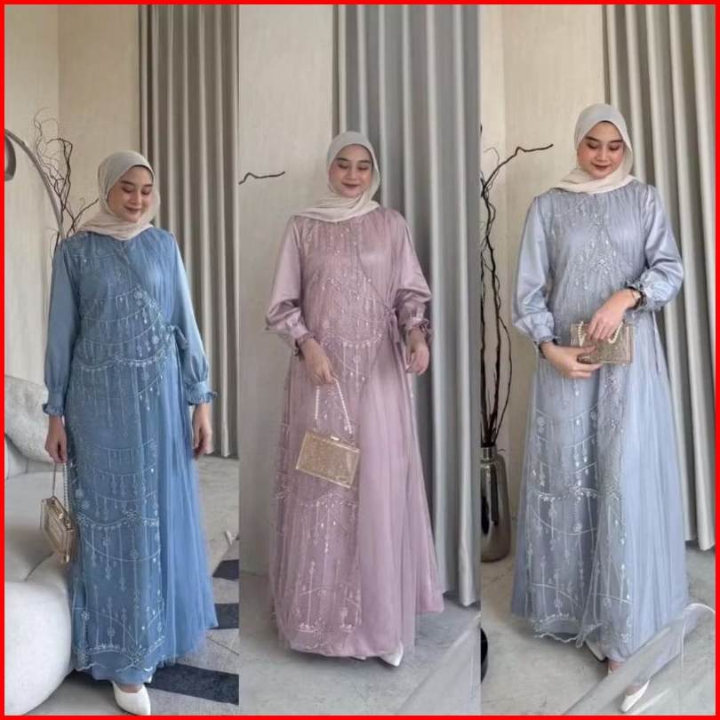 Kinar Dress Pesta Kondangan Burkat Mewah Elegan Gamis Lebaran 2025 Velvet Mix Tille Garden