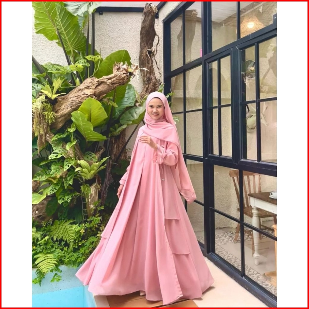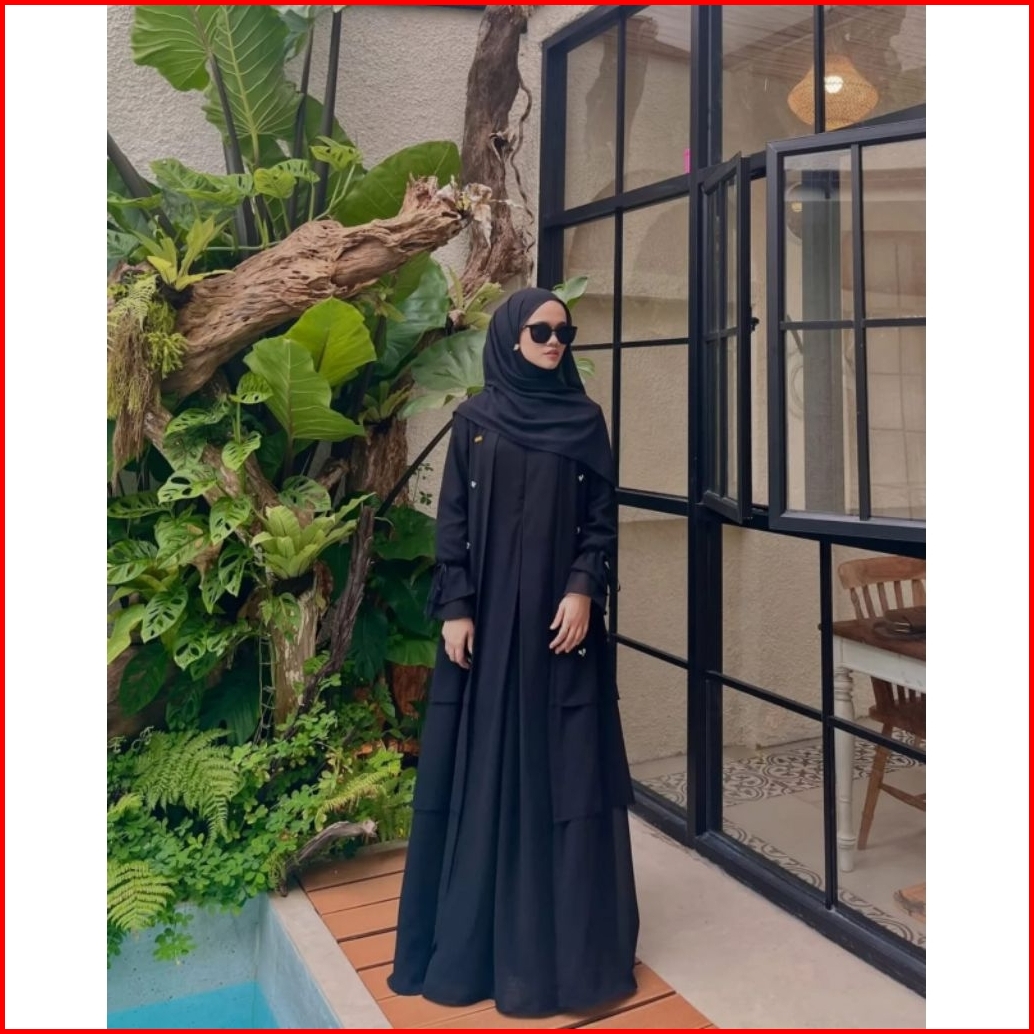 Fashion Gamis Dress Sabrina Abaya Simple Elegan Bahan Cerutty Babydoll Full Puring Aplikasi Payet