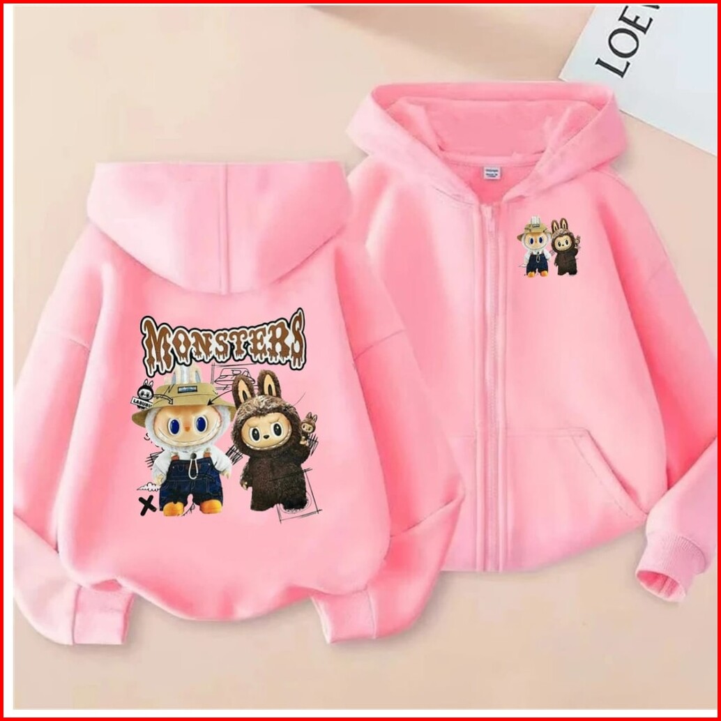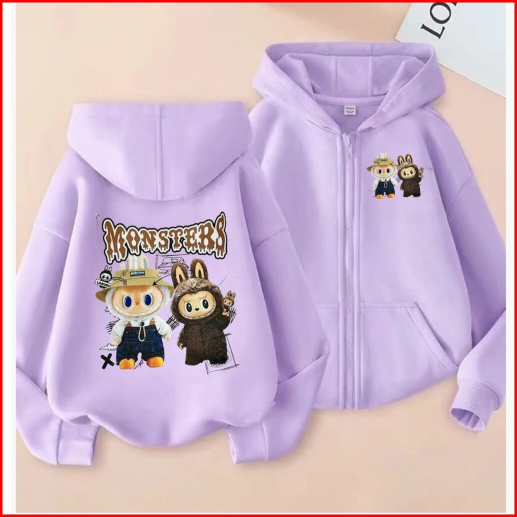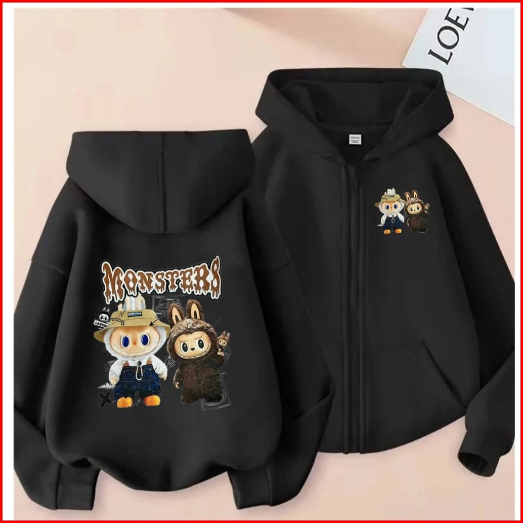 - Labubu Monster Zipper Hoodie Anak Sweater Hoodie Anak 8 - 10 Tahun Bahan Fleece Dtf Sablon