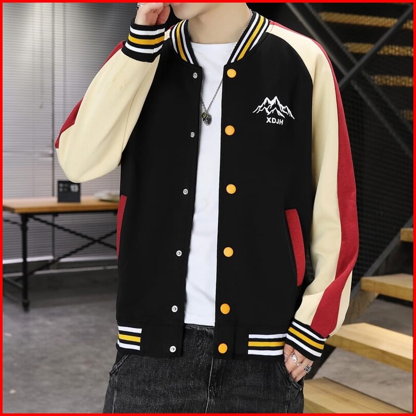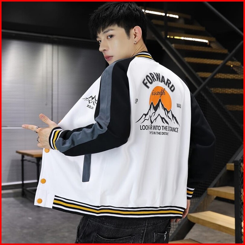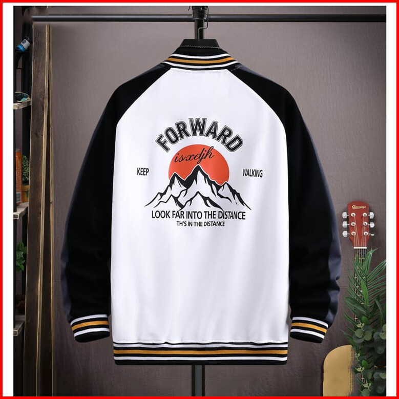 - Forward Kerah Jaket Baseball Varsity Casual Korean Style Outerwear Pria Bahan Fleece Premium