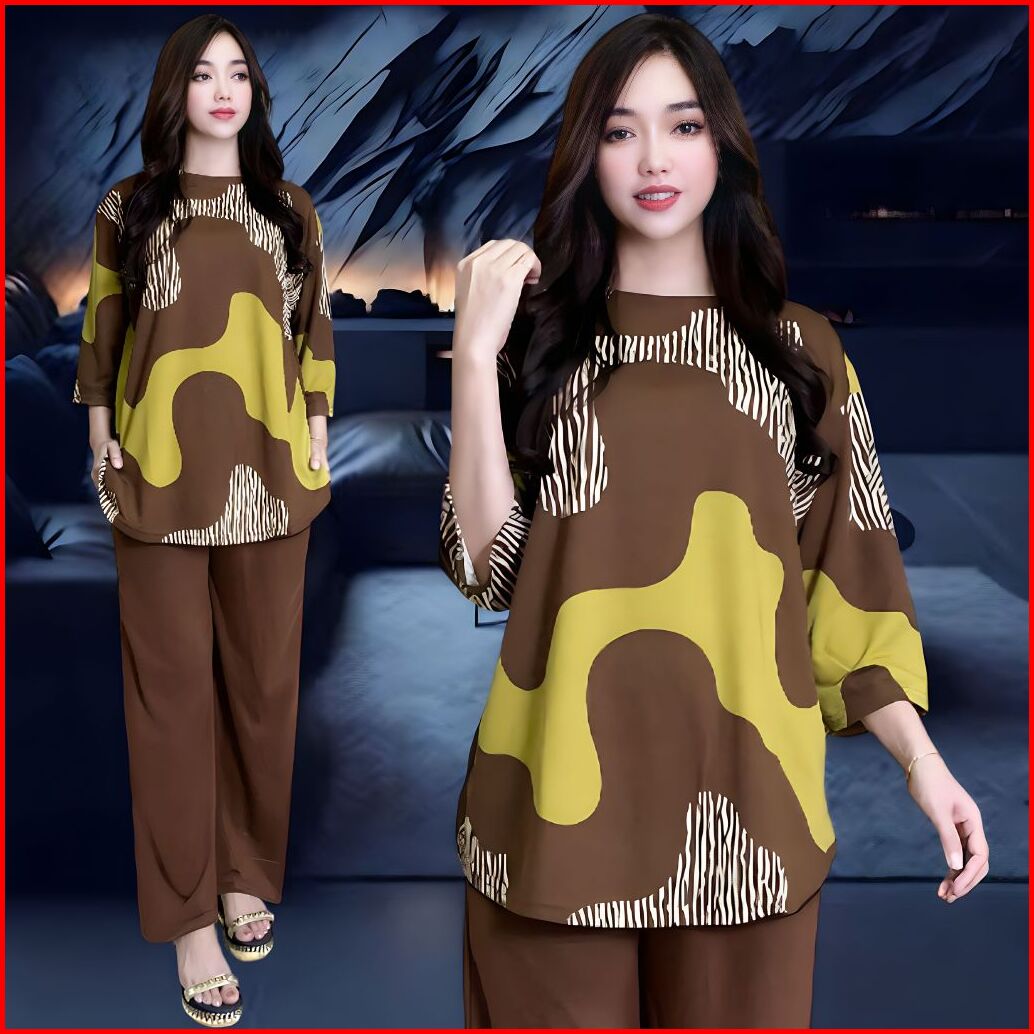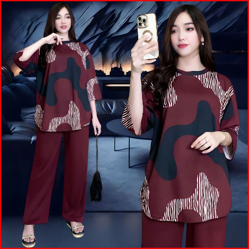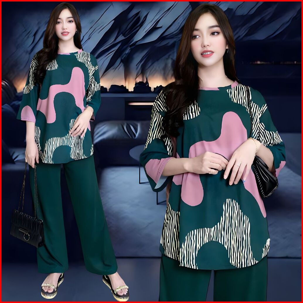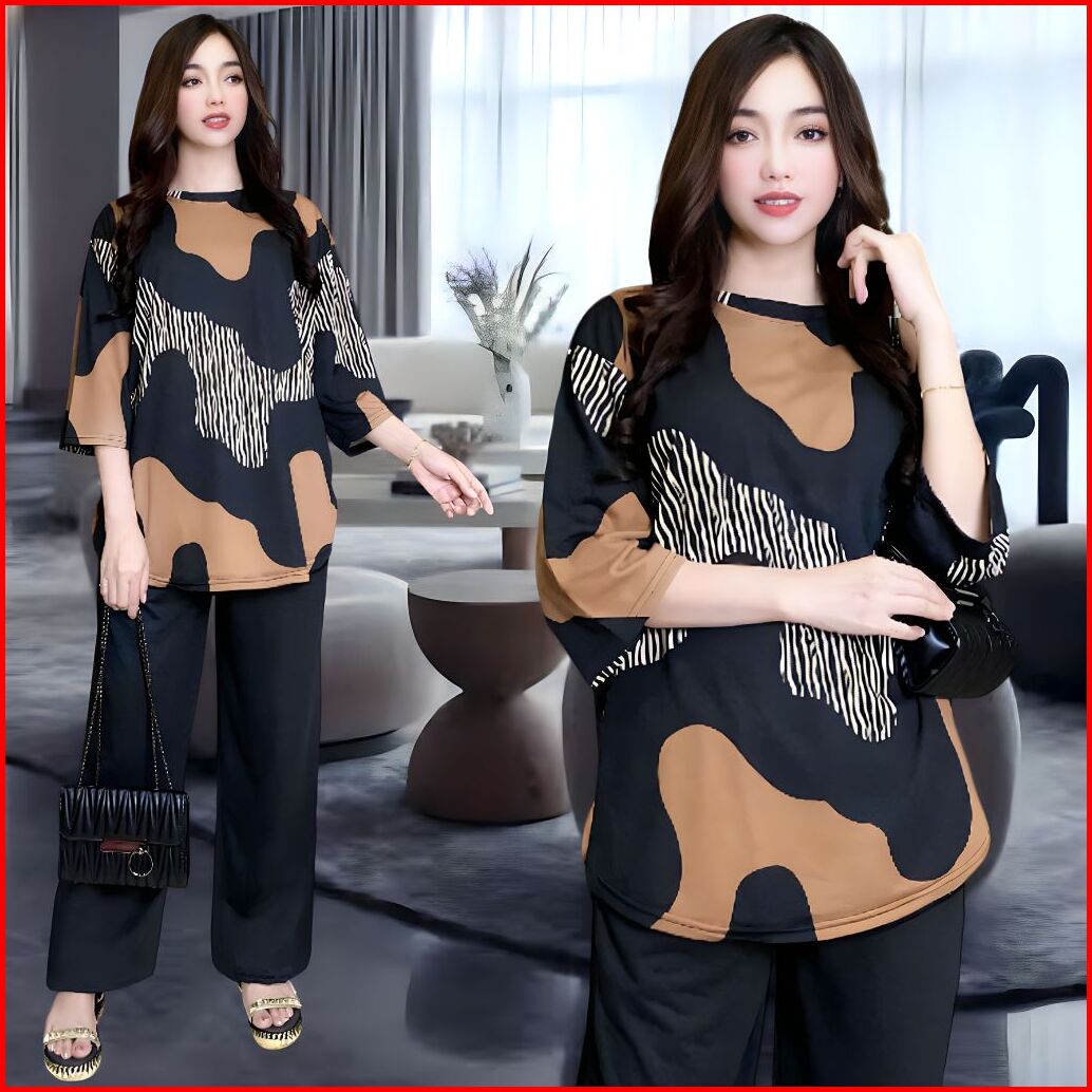 Telsa Setelan Wanita Ld 120 Ld 130 Celana Lurus Dan Atasan Oval Belahan Kiri Dan Kanan Oversize Wanita Celana Lurus Kare