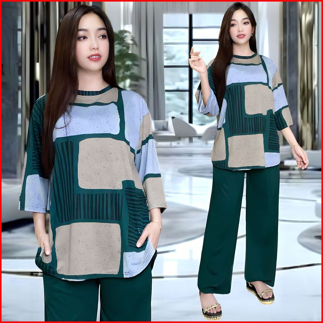 Chella Setelan Wanita Ld 120 Ld 130 Celana Lurus Dan Atasan Oval Belahan Kiri Dan Kanan Oversize Wanita Celana Lurus Kar