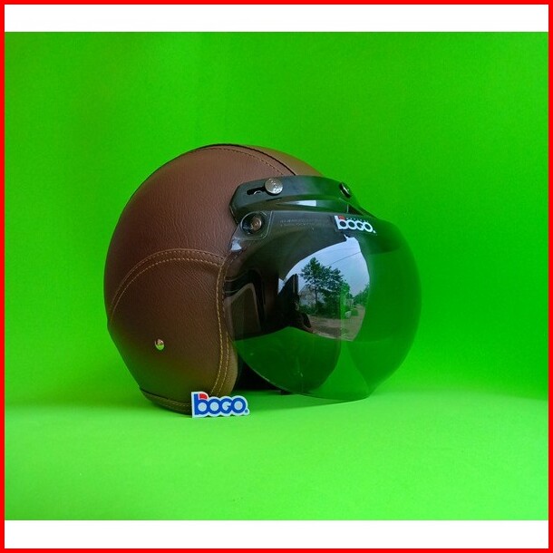 Helm Bogo Retro Kulit Dewasa Kaca Bogo Original Full Coklat