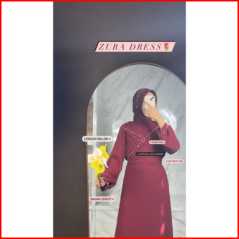 Ready Stock Zura Dress Gamis Payet Premium Size M-xl