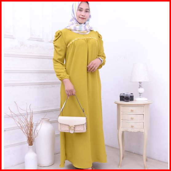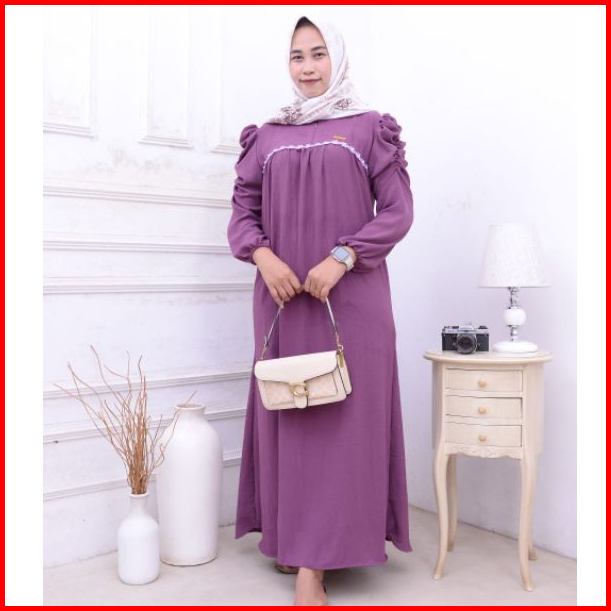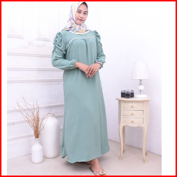 Gamis Naura Terbaru Cringkle Variasi Renda Payet