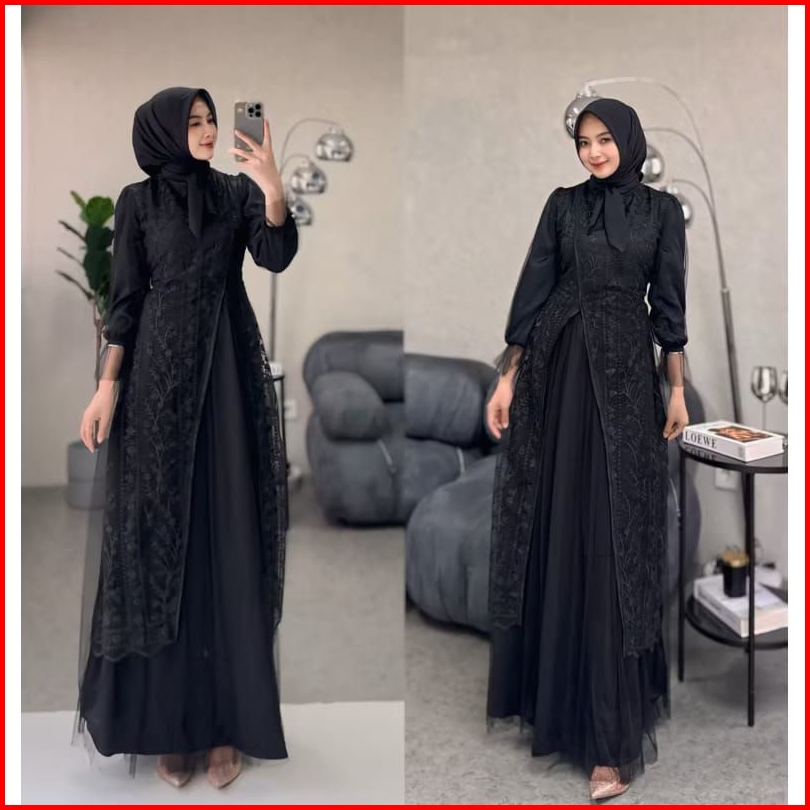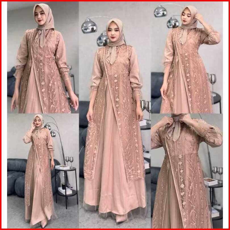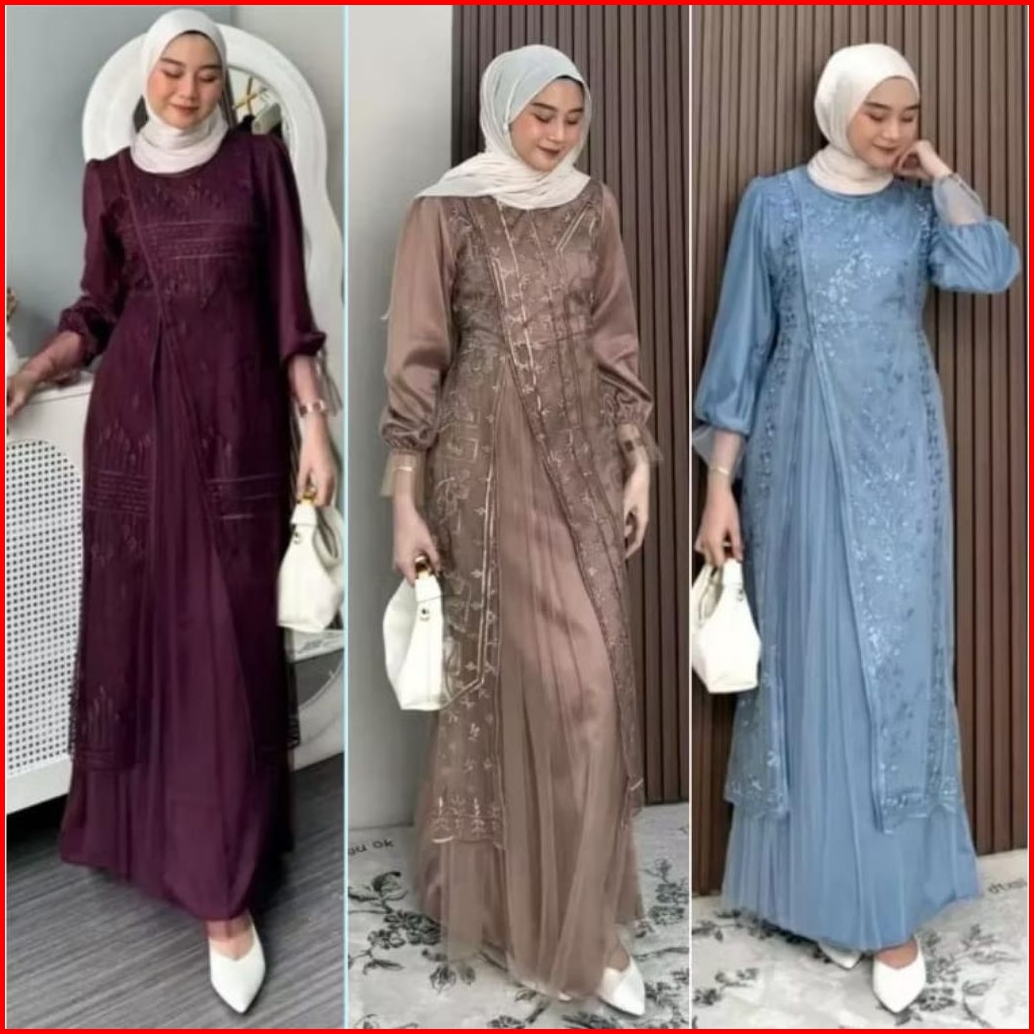 Kinar Dress Gamis Wanita Kekinian Gamis Pesta Kondangan Gamis Lebaran 2025 Velvet Mix Tille Garden