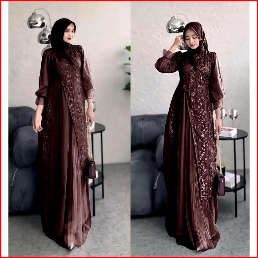 Paula Dress Gamis Pesta Kondangan Gamis Burkat Lebaran 2025 Elegan Busui Velvet Mix Tille Garden