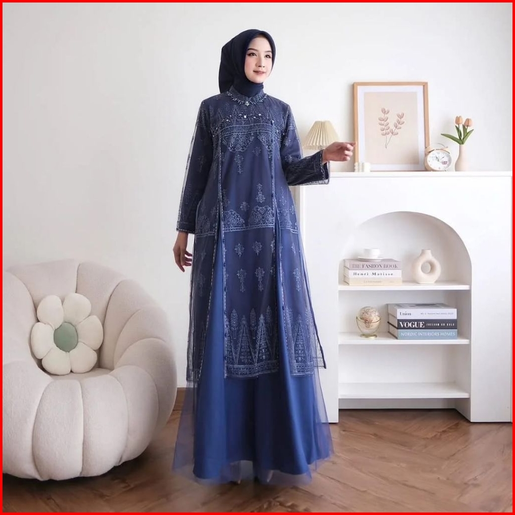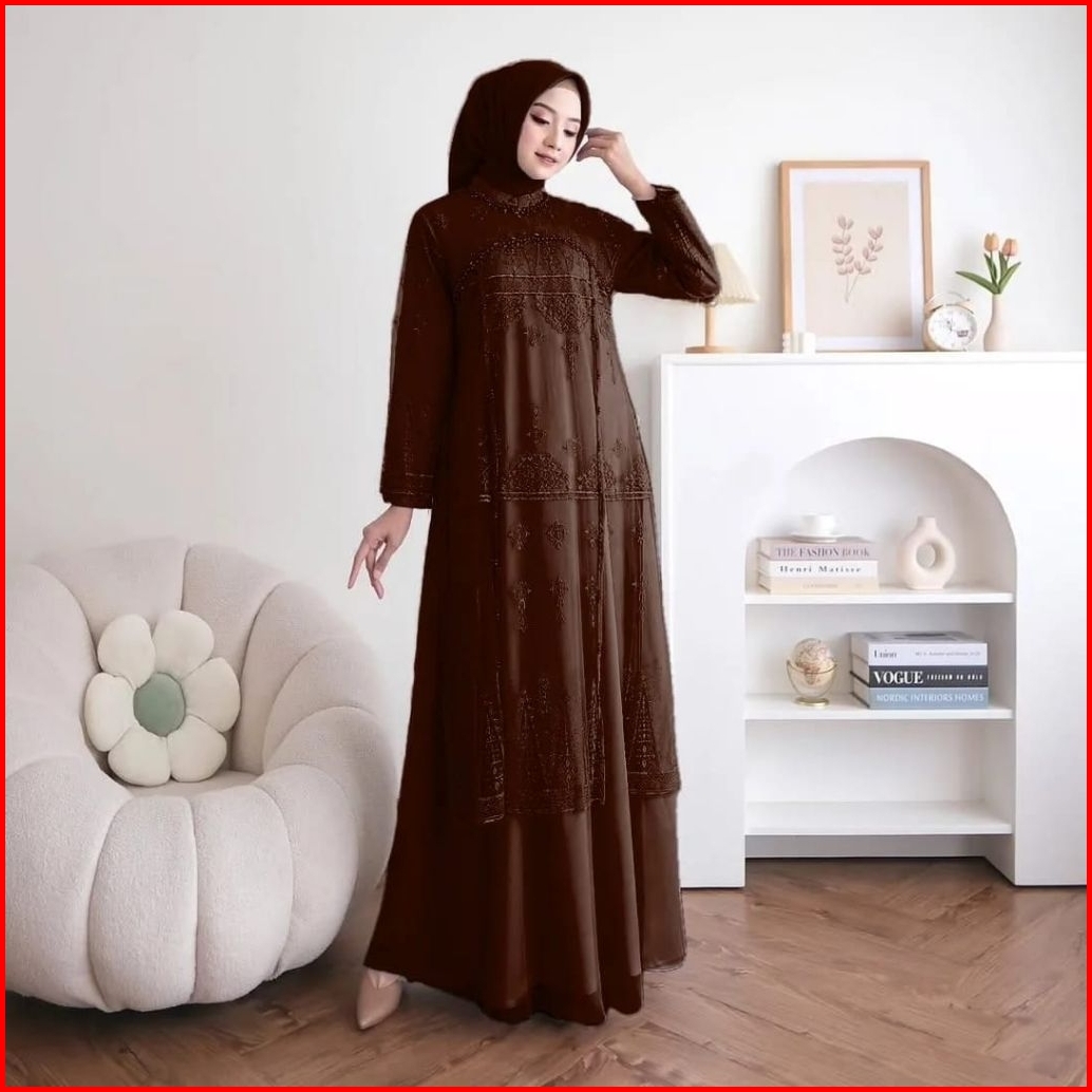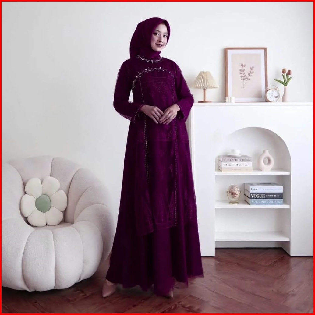 Aruna Tile Puring Mix Burkat Aplikasi Payet Mutiara Premium Dress Simple Elegan Mewah Gamis Kondanga
